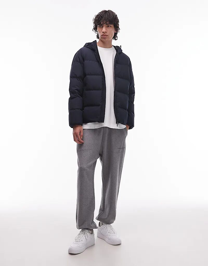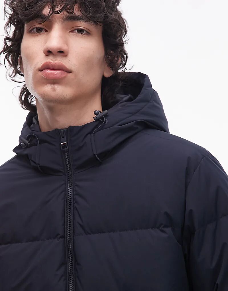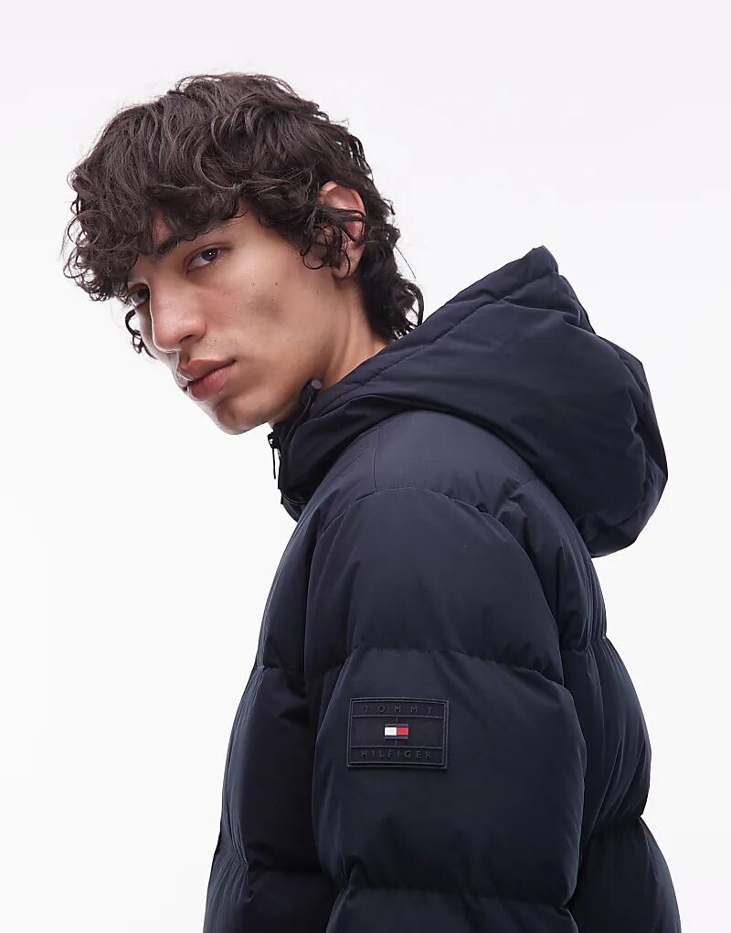 Пуховик с капюшоном Tommy Hilfiger темно-синего цвета