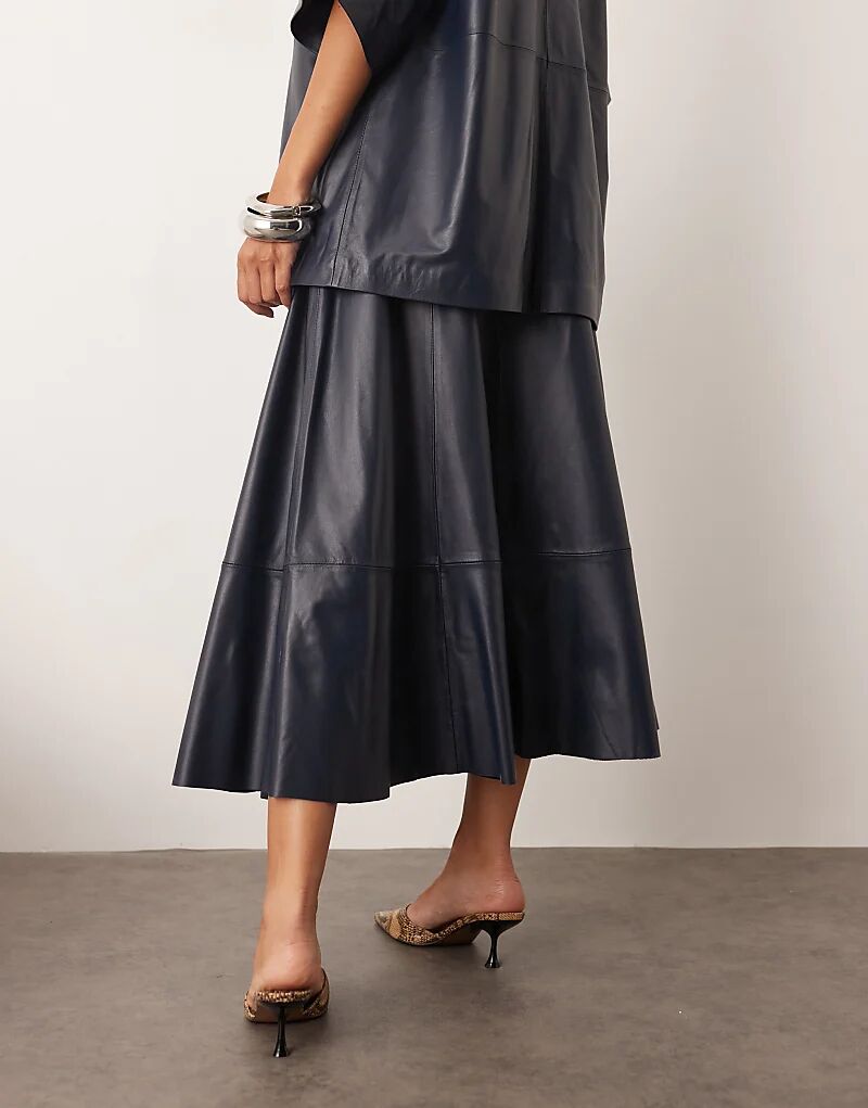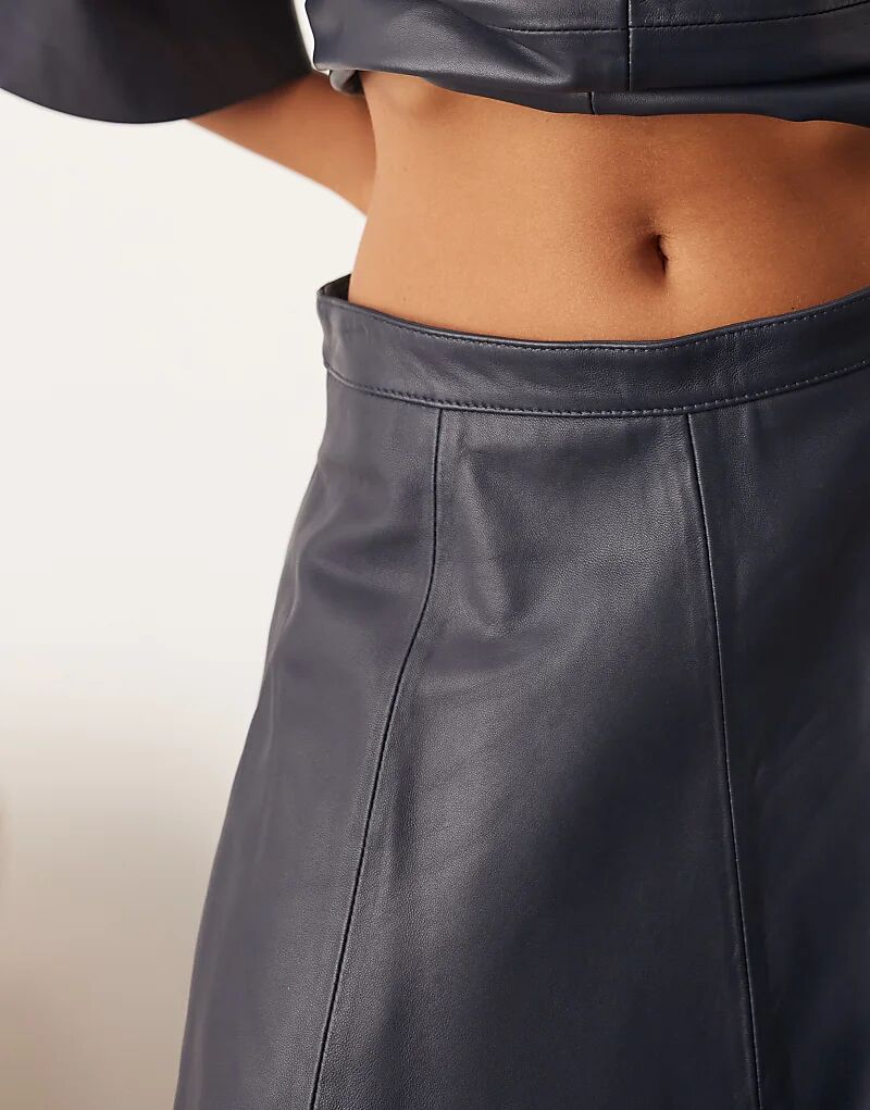 Юбка-солнце из кожи ARRANGE, цвет темно-синий