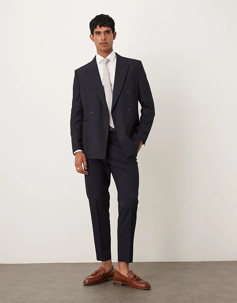 Двубортный пиджак ASOS DESIGN темно-синего цвета