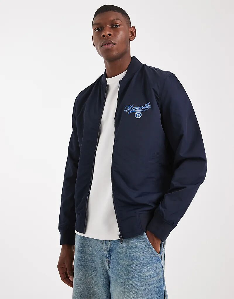 Легкая куртка-бомбер ASOS DESIGN с принтом темно-синего цвета