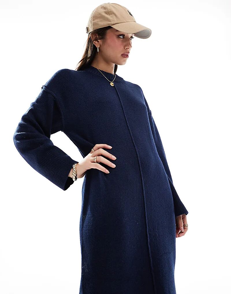 Платье мидакси ASOS DESIGN со швом спереди, темно-синего цвета