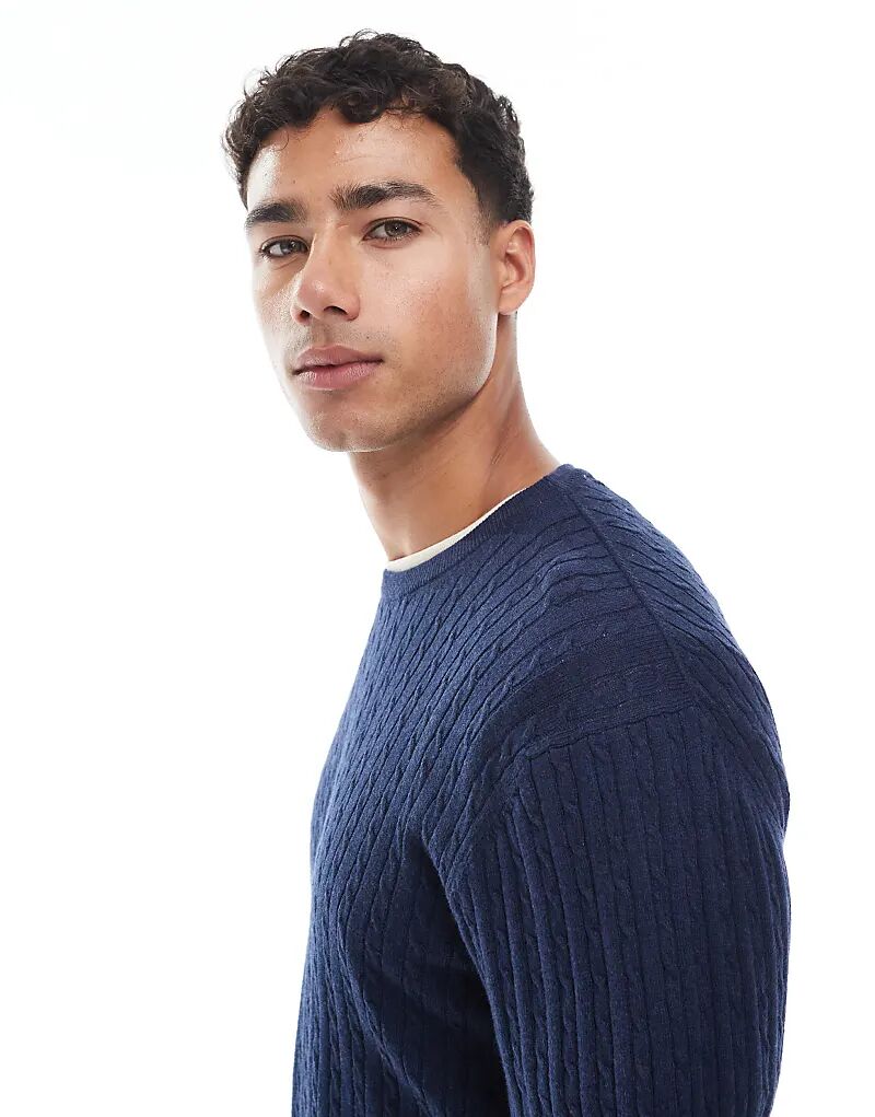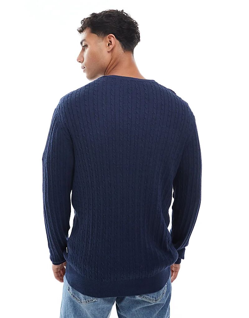 Кабельный джемпер Jack & Jones темно-синего цвета