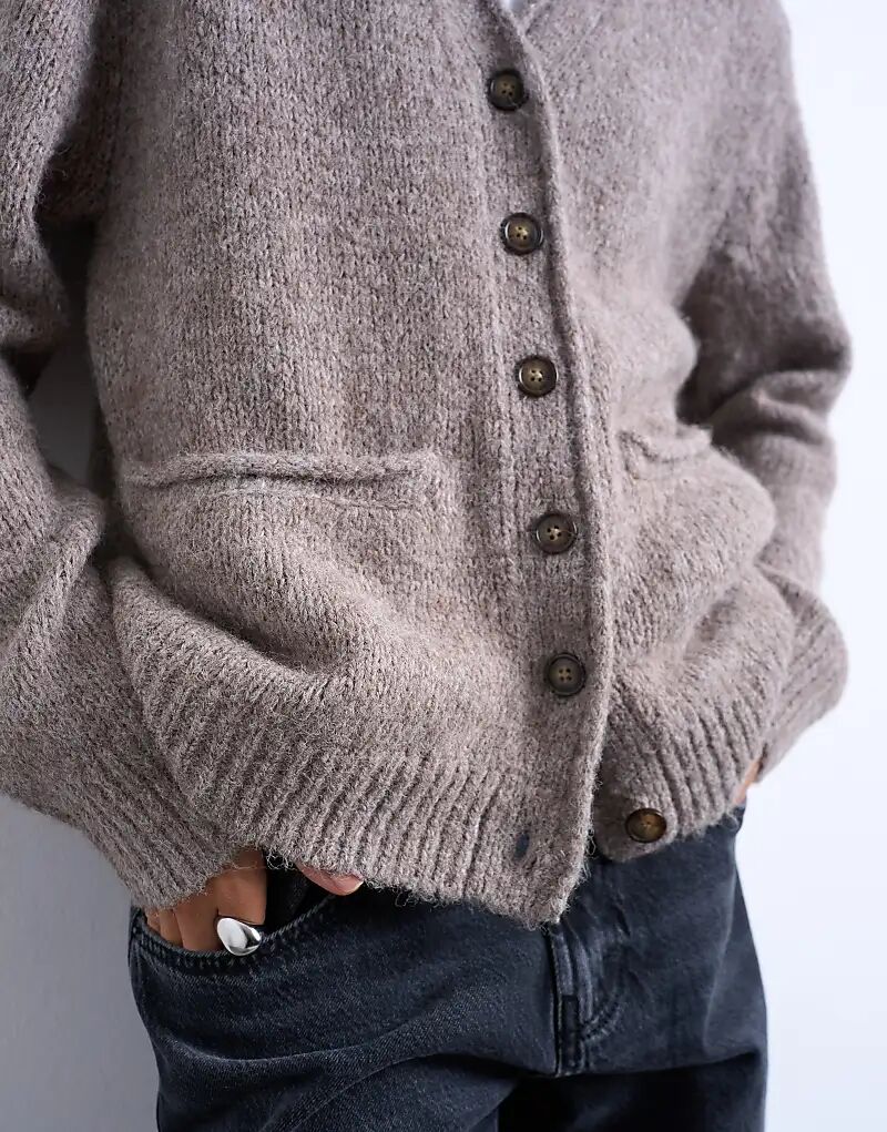 Кардиган Topshop из плотной шерстяной смеси с удлиненным карманом