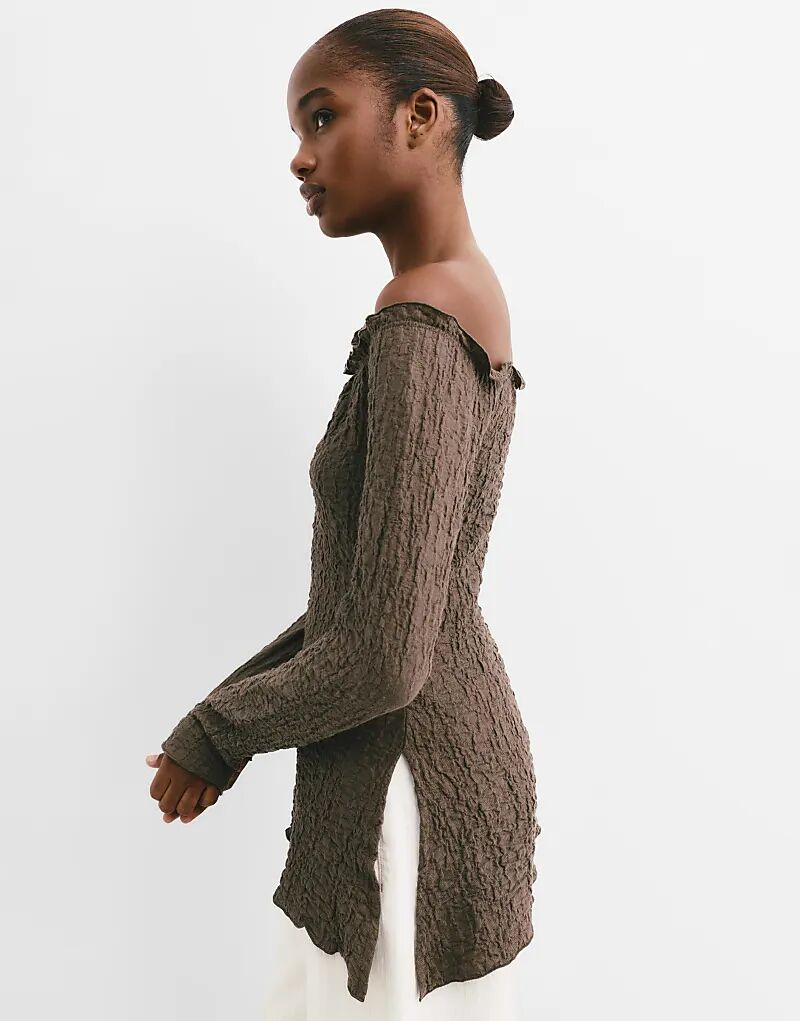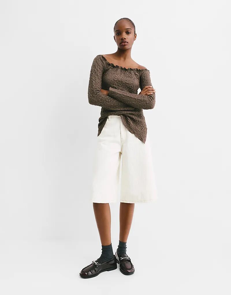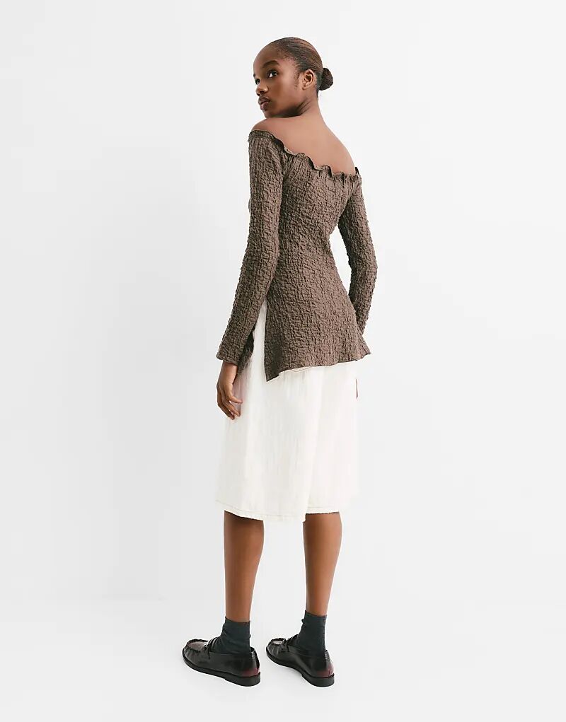 Топ с плиссировкой и лифом Bardot Pull&Bear цвета охры