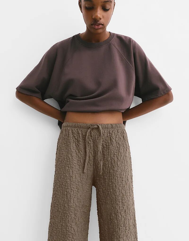 Широкие спортивные брюки Pull&Bear с эффектом мятины цвета охры