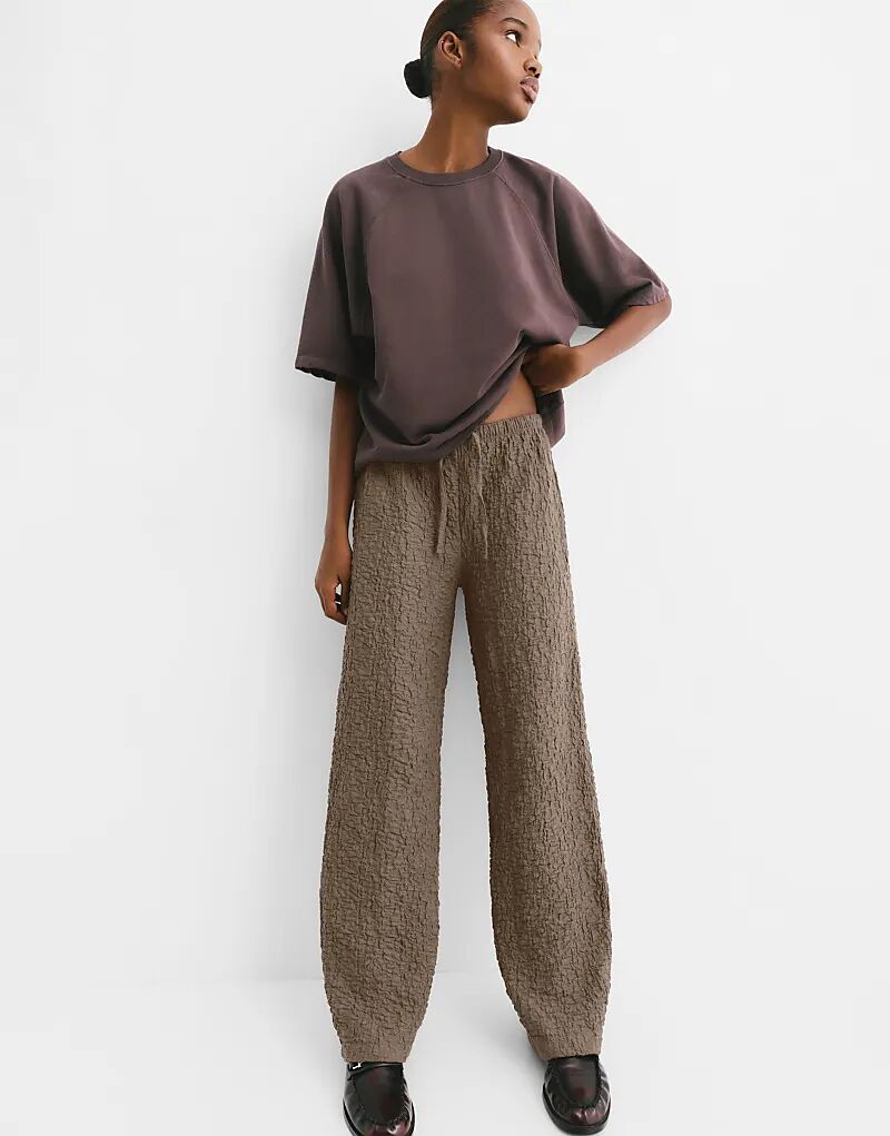 Широкие спортивные брюки Pull&Bear с эффектом мятины цвета охры 2 989₽