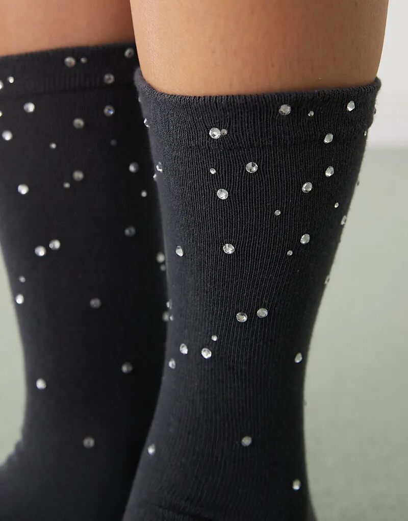 Носки Weekday со стразами в оттенке «черный с оттенком»