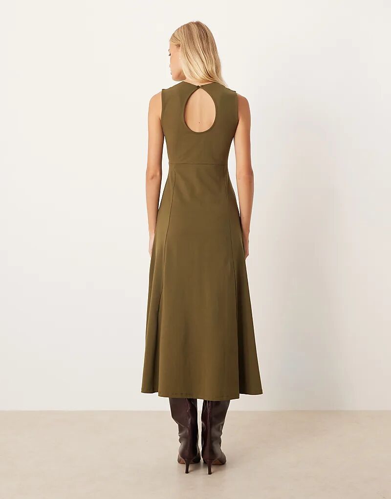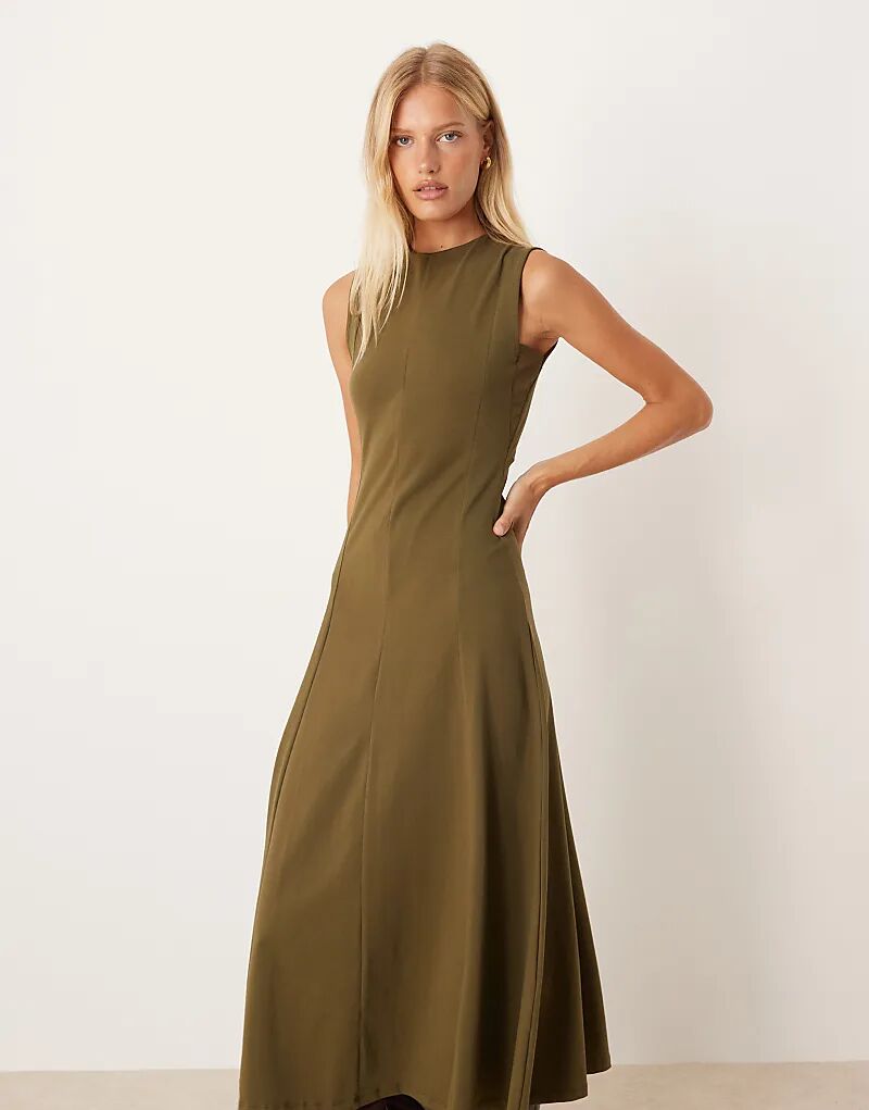 Хлопковое платье миди без рукавов ASOS DESIGN оливкового цвета