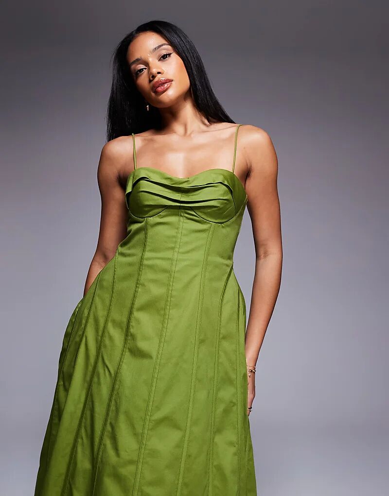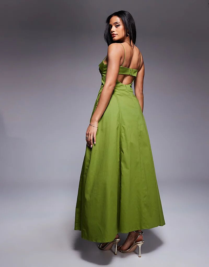 Оливковое платье миди из хлопкового сатина ASOS LUXE