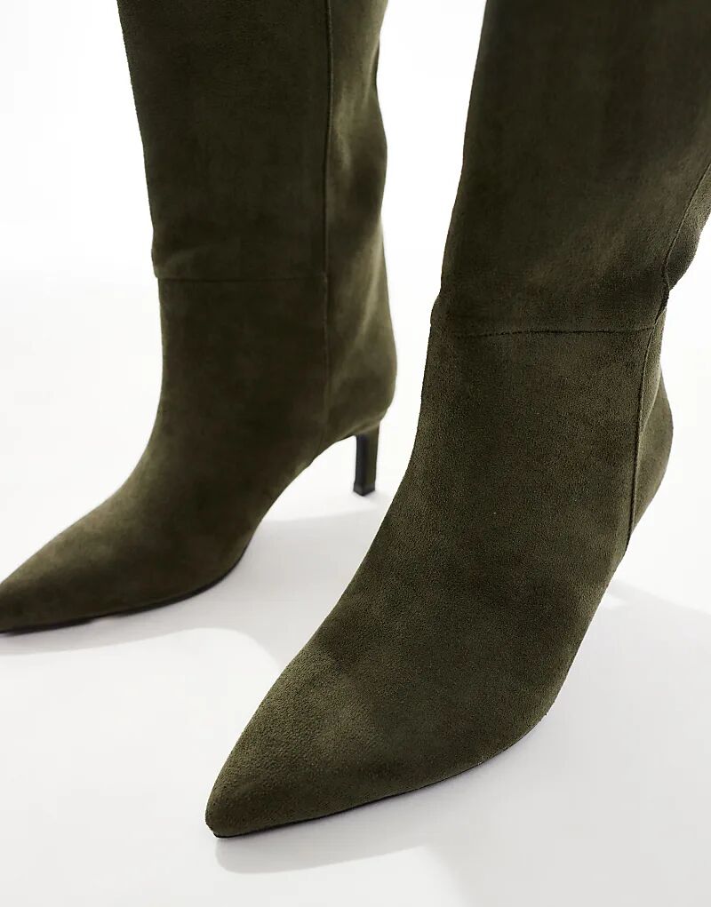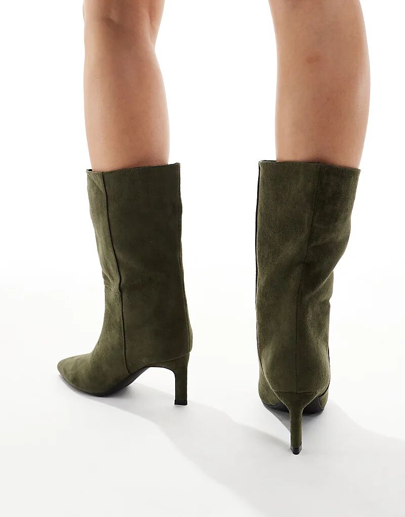 Ботильоны SEQWL Benz на каблуке-рюмочке оливкового цвета