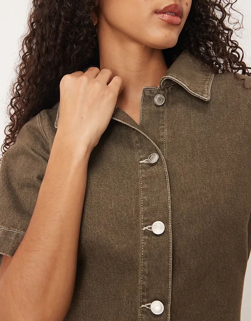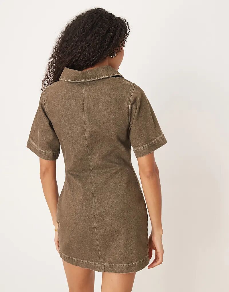 Приталенное джинсовое платье-рубашка ASOS DESIGN оливково-зеленого цвета