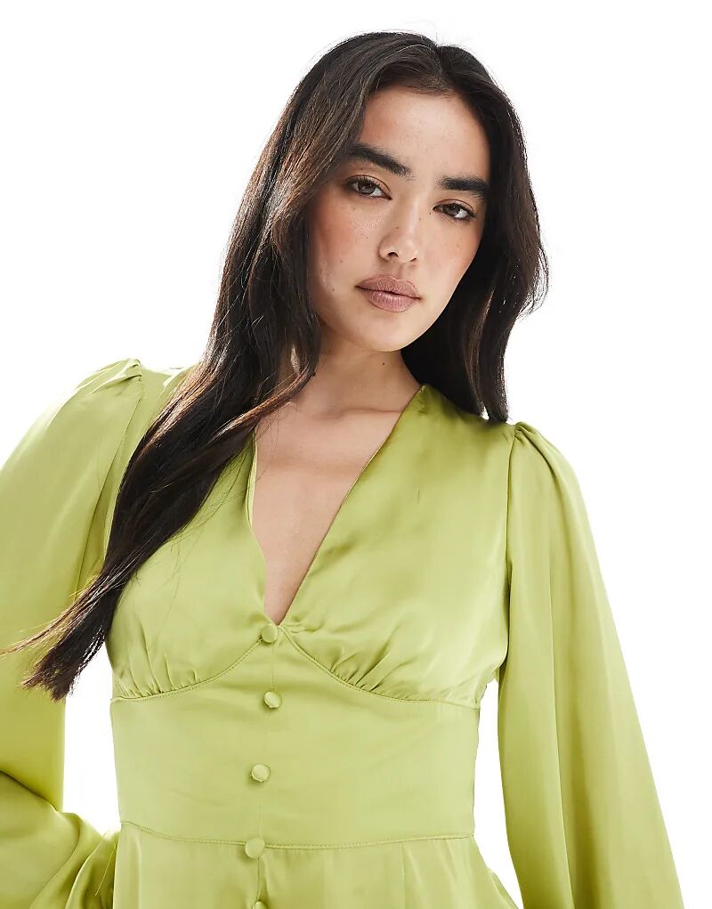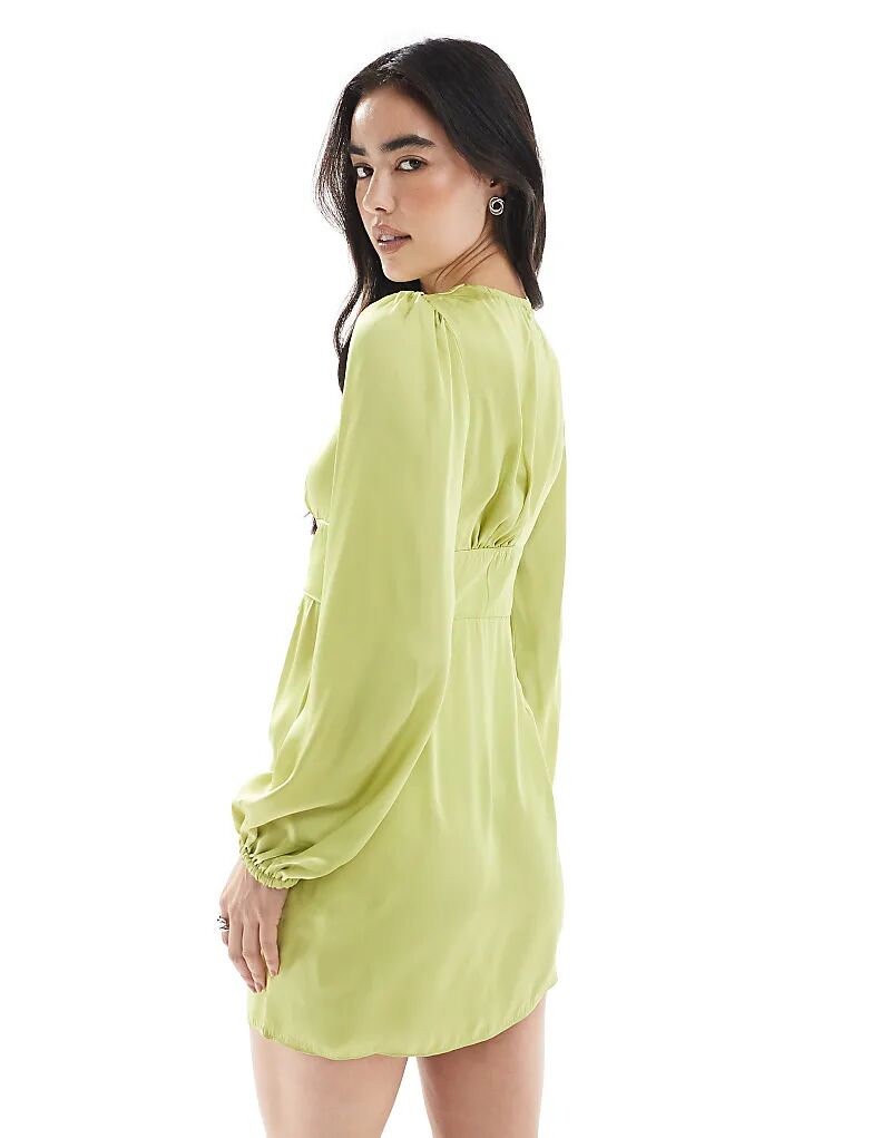 Платье мини с пуговицами спереди оливково-зеленого цвета