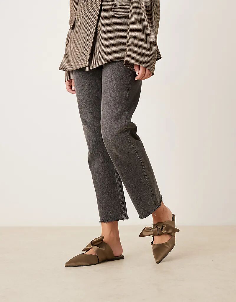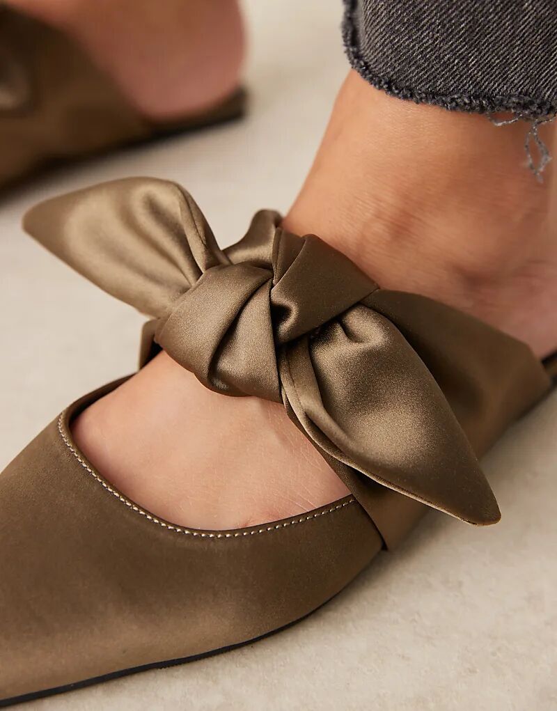 Мюли ASOS DESIGN Wide Fit с бантом Lunar из оливкового атласа