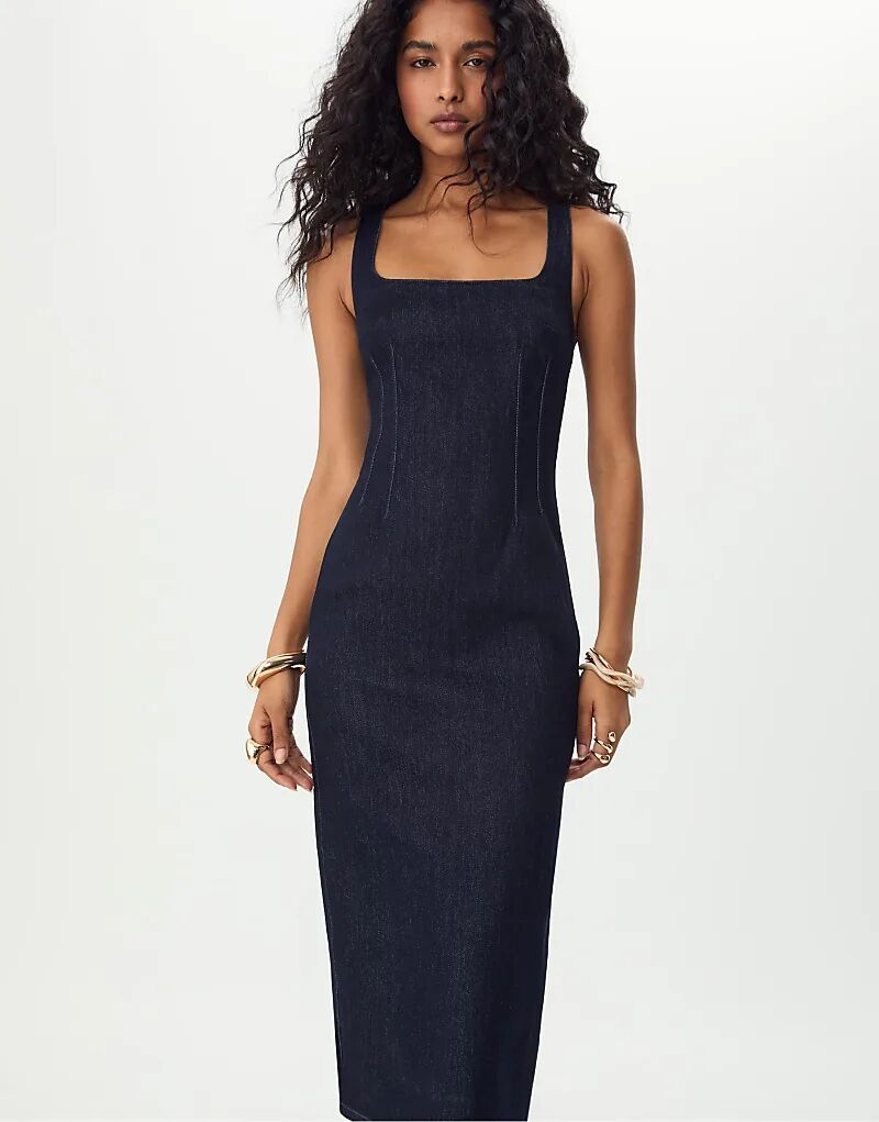 Платье миди Stradivarius Denim из насыщенного синего денима