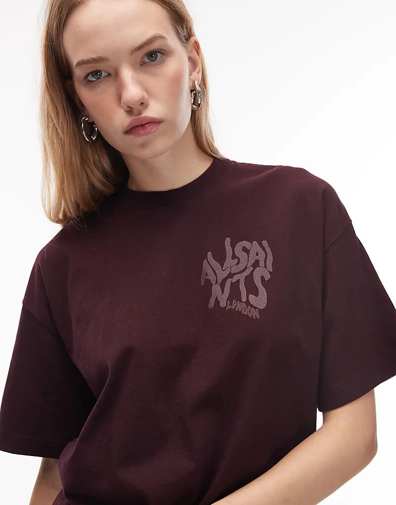 Бордовая футболка Allsaints Orlando etta 7 938₽