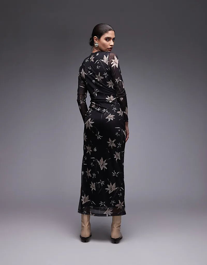 Платье Allsaints Caia с цветочным принтом и сеткой в ​​цвете «Петра Браун»