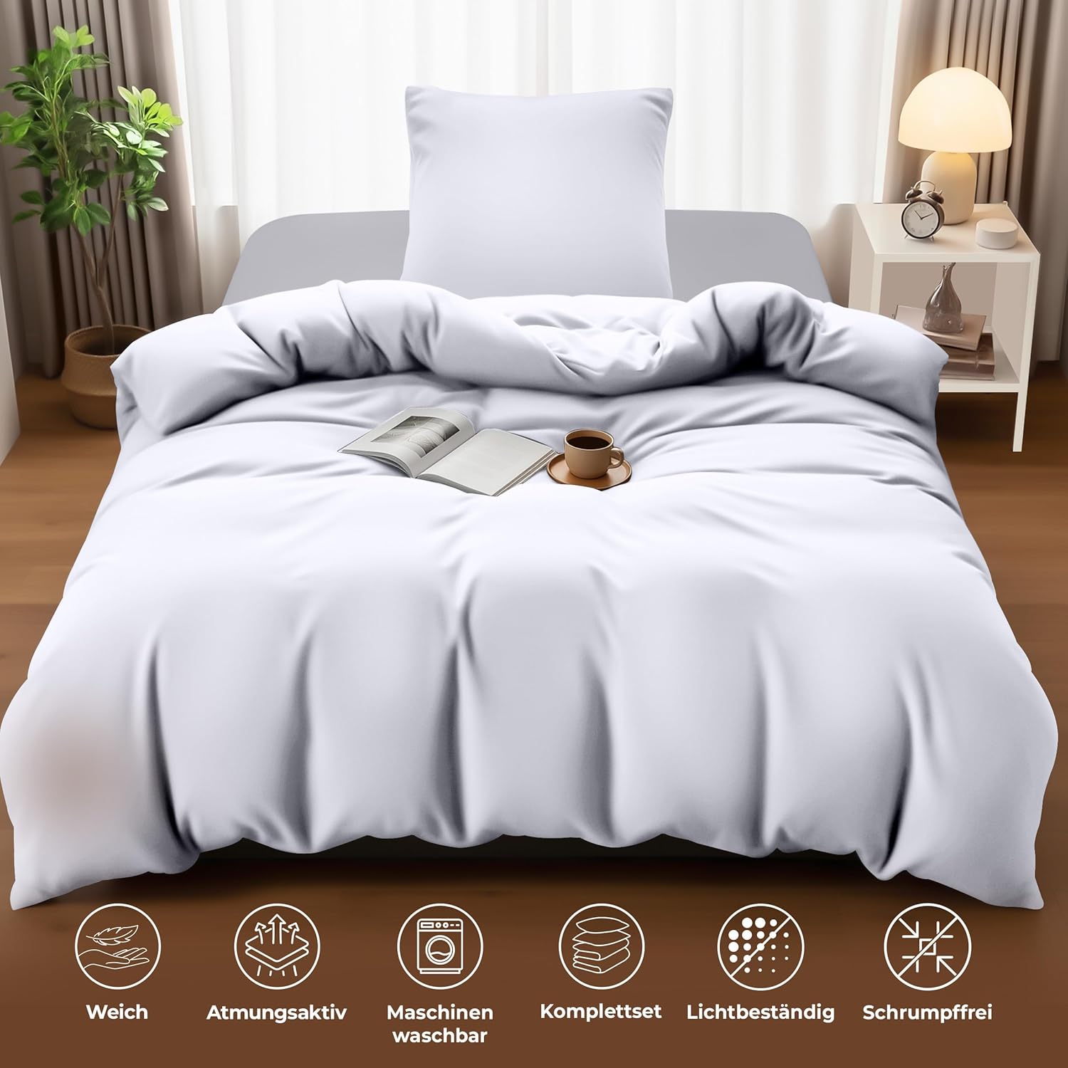 Постельное белье Utopia Bedning 140 x 200 см комплект, микрофибровый пододеяльник 140 x 200 см + 1 наволочка 65 x 65 см, белый