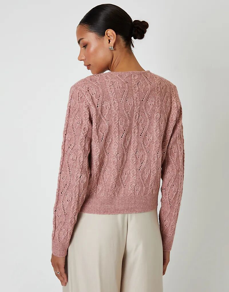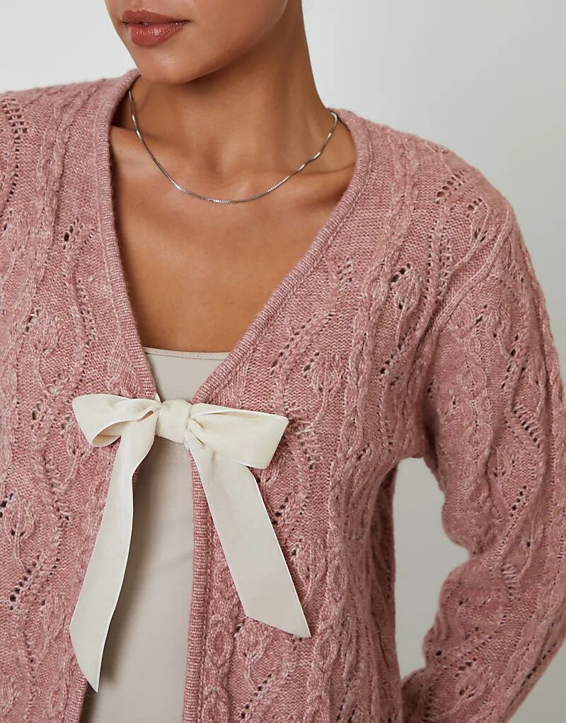 Вязаный бархатный кардиган Threadbare Cable с бантом розового цвета