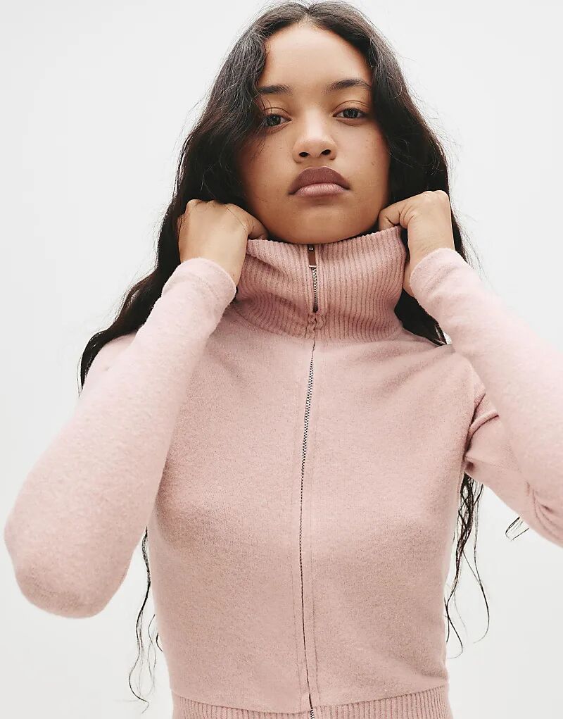 Мягкая на ощупь куртка на молнии Pull&Bear розового цвета