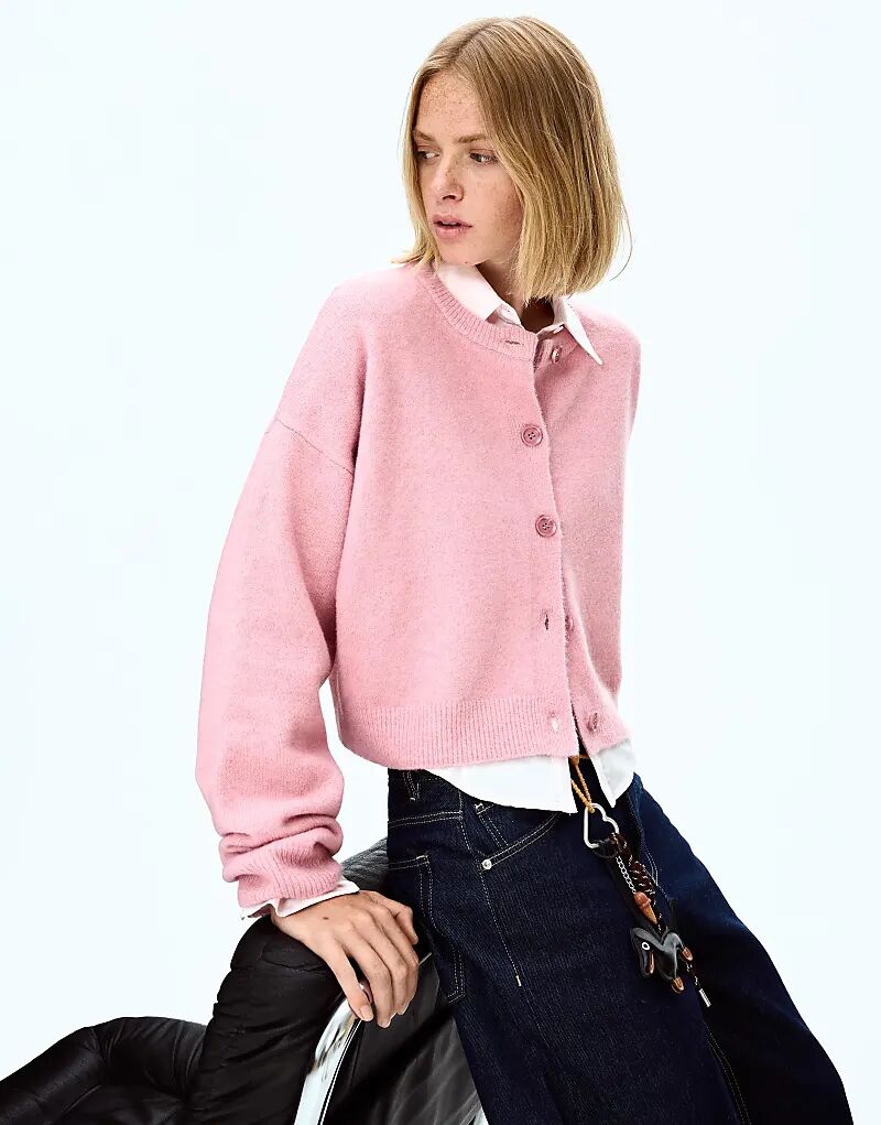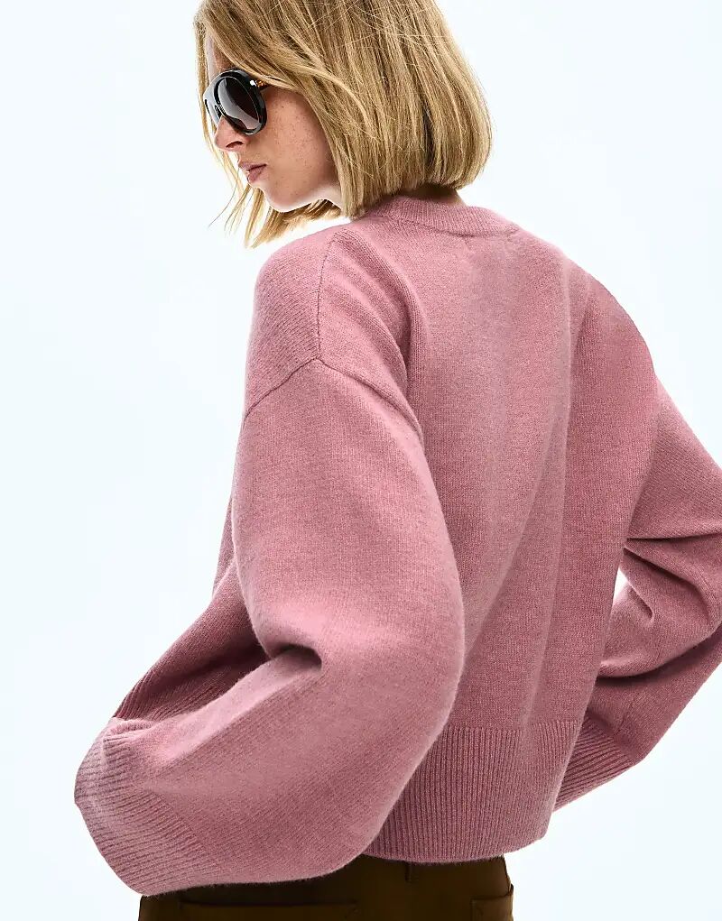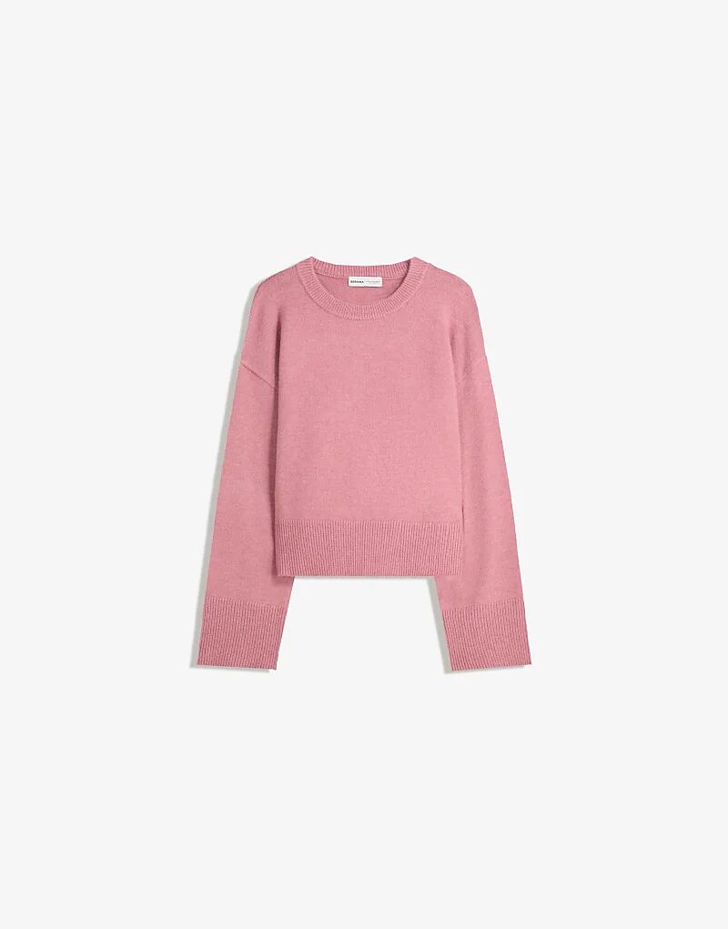Свитер Bershka Oversize с ребристым подолом розового цвета
