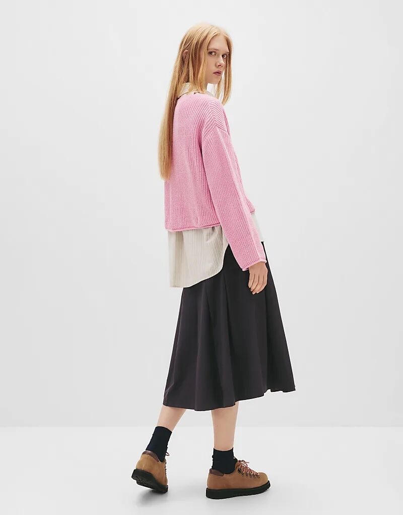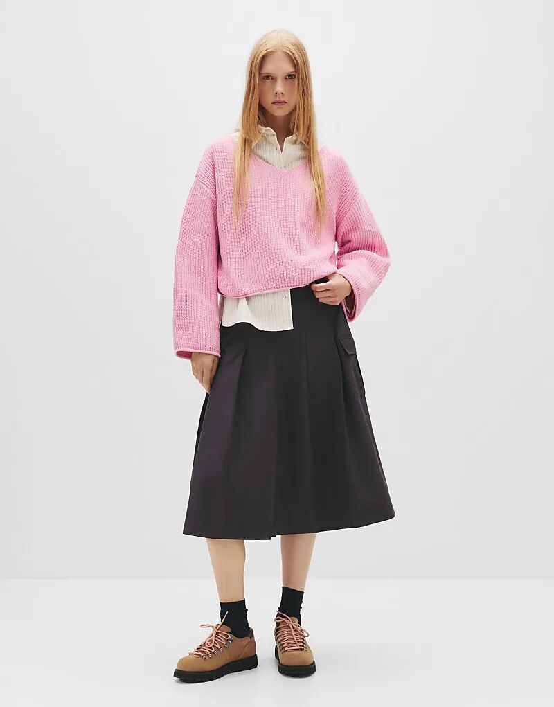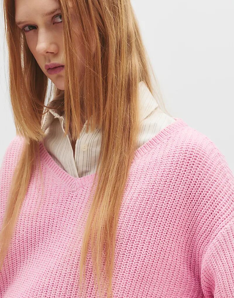 Свитер Pull&Bear из шенилла с V-образным вырезом розового цвета 2 965₽