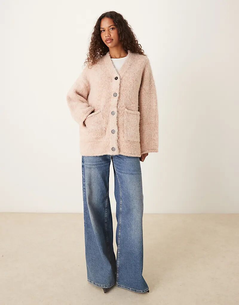 Кардиган ASOS DESIGN оверсайз в розовом цвете