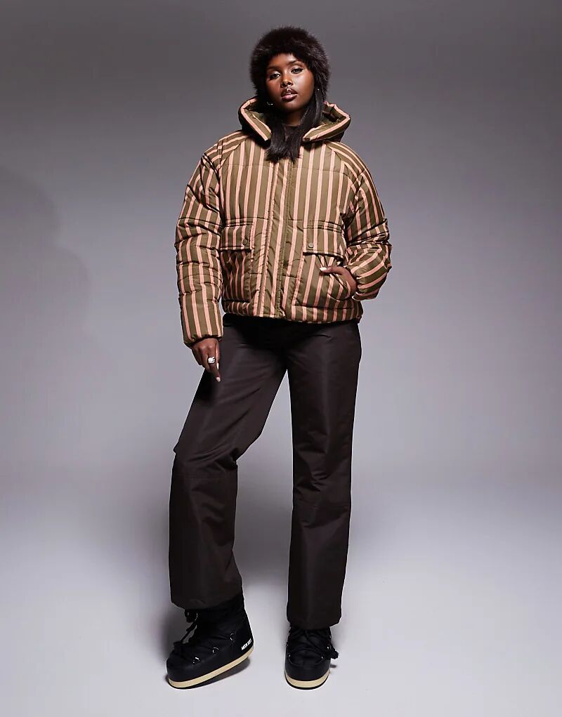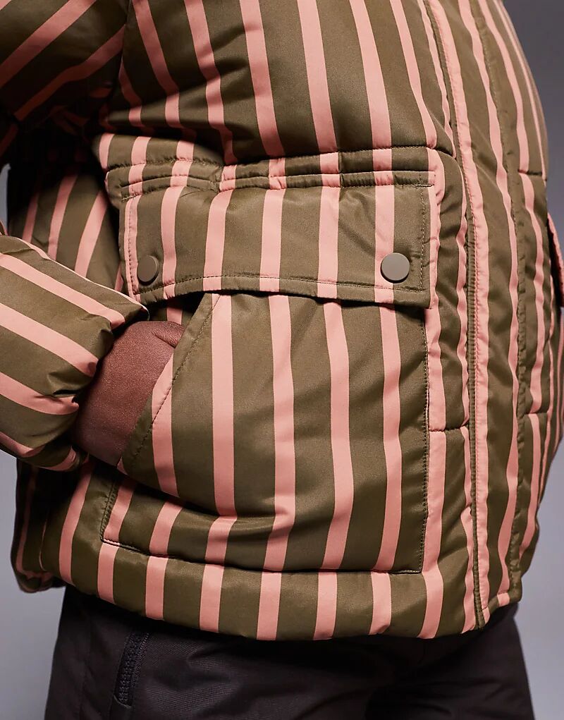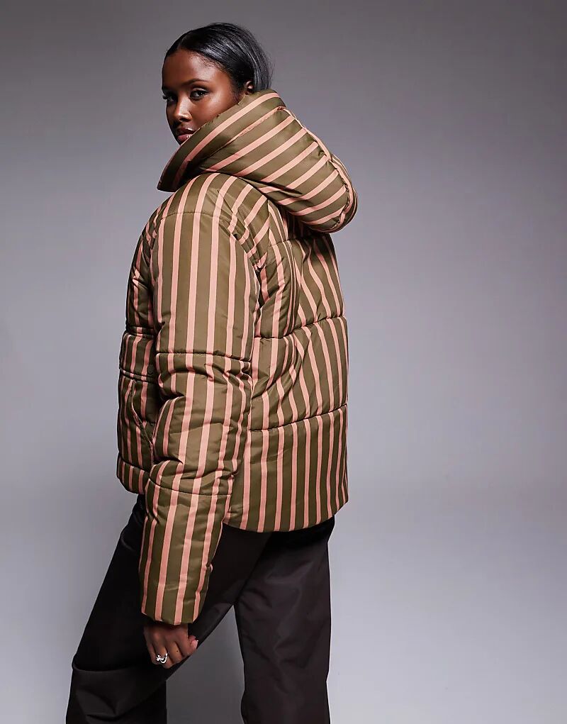 Пуховик Threadbare Ski Stripes с капюшоном зеленого и розового цветов