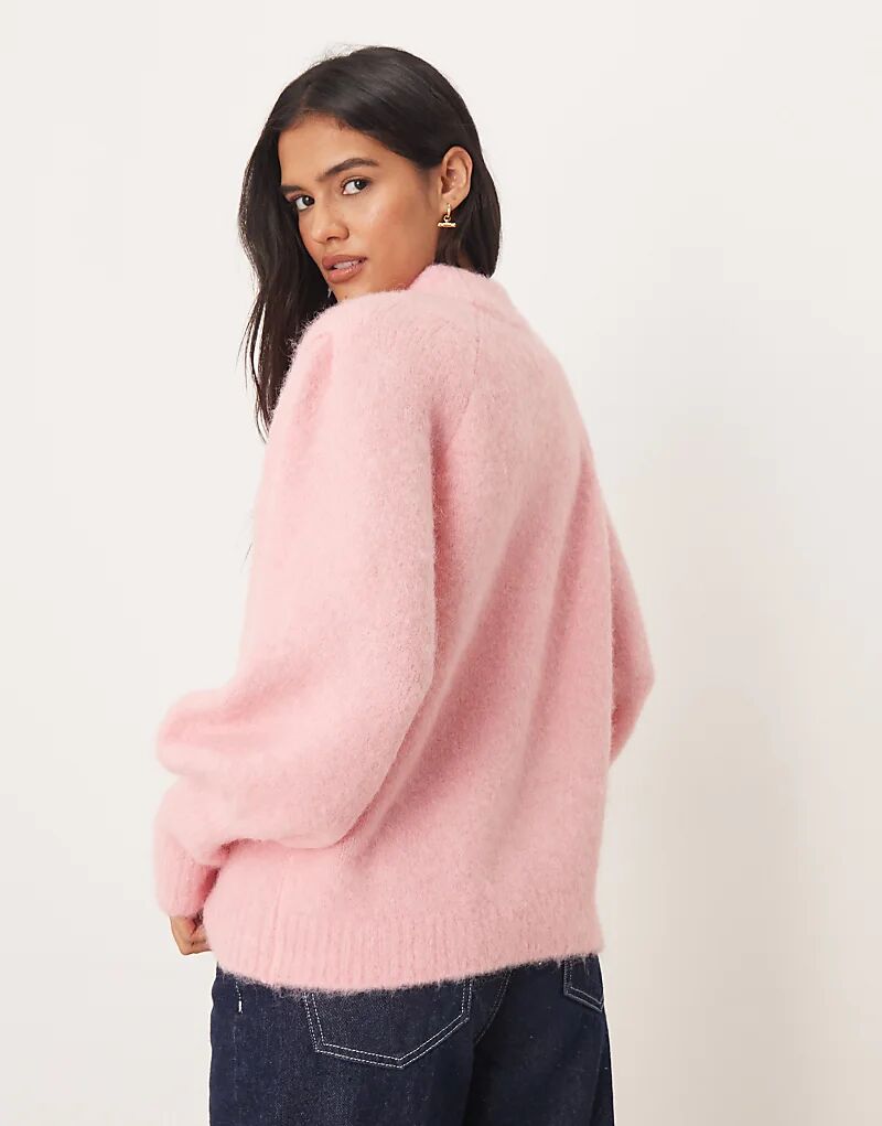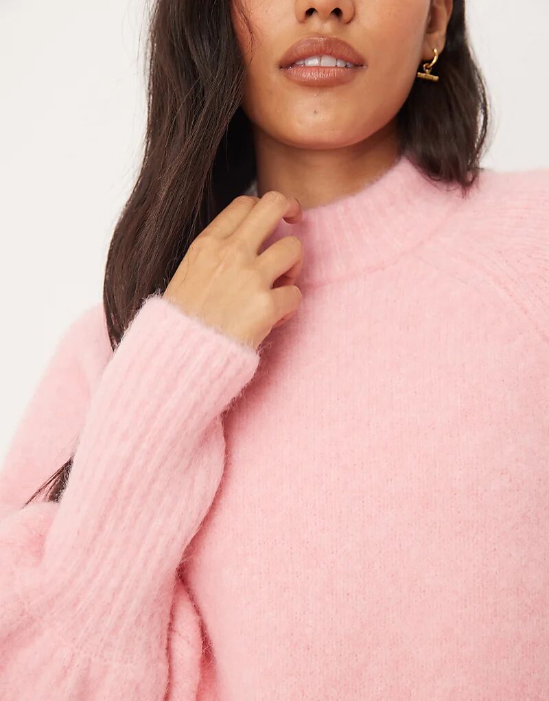 Розовый пушистый джемпер с высоким воротом ASOS DESIGN