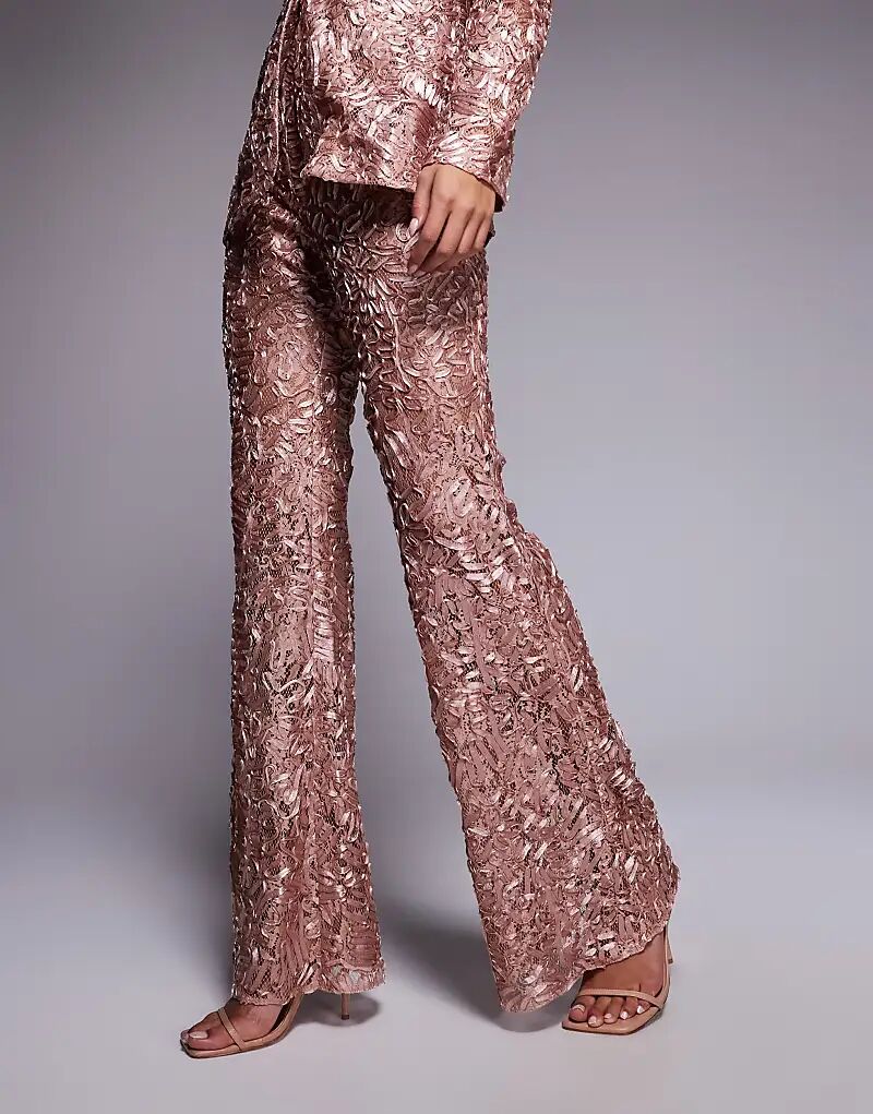 Кружевные брюки-клеш ASOS LUXE в цвете румян