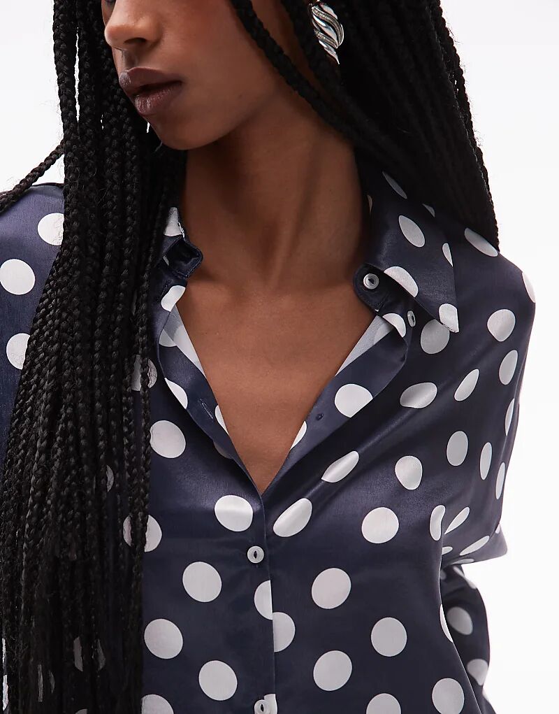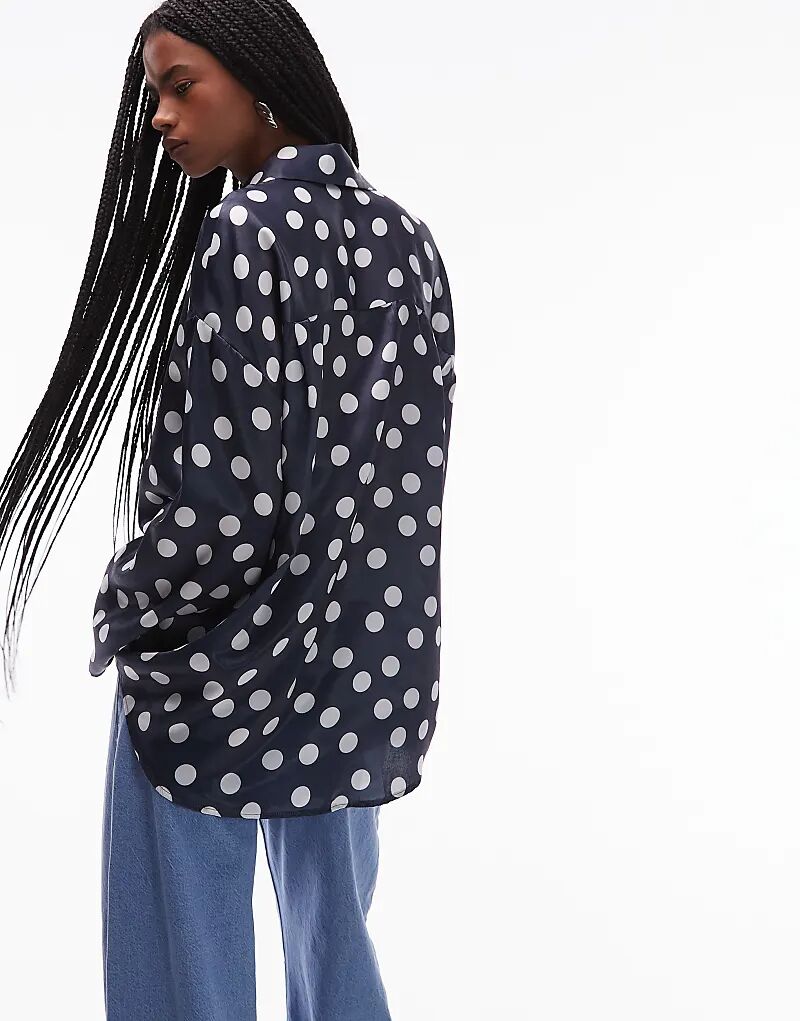 Рубашка из атласа ASOS DESIGN с широкими манжетами в горошек 2 830₽