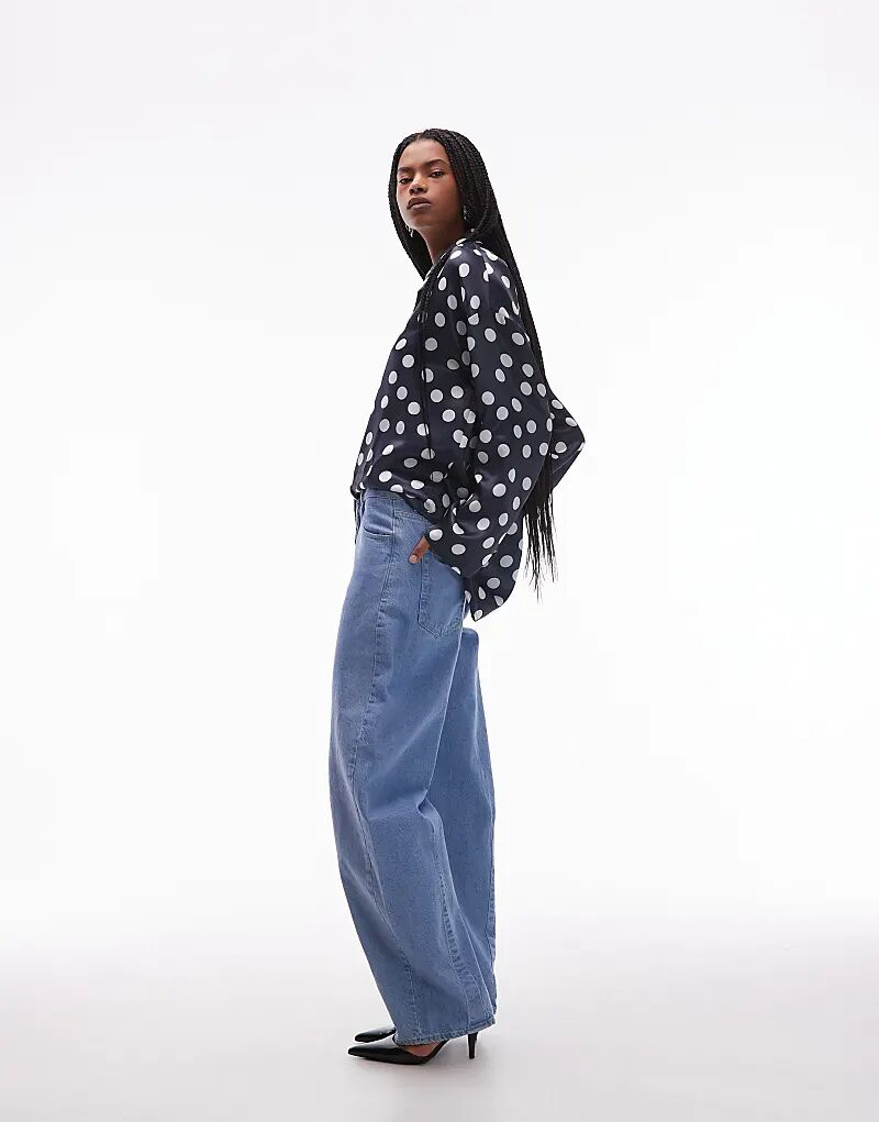 Рубашка из атласа ASOS DESIGN с широкими манжетами в горошек