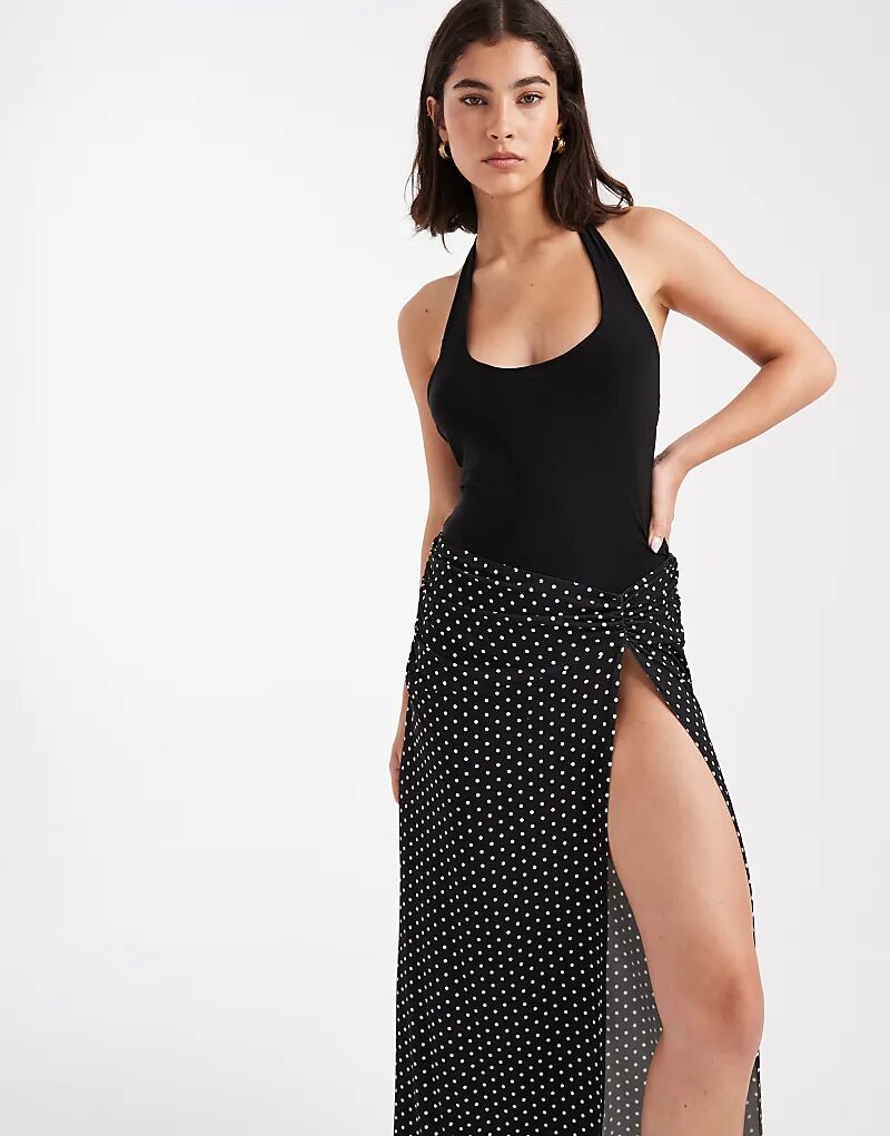 Платье макси Miss Selfridge с халтер-воротником в горошек