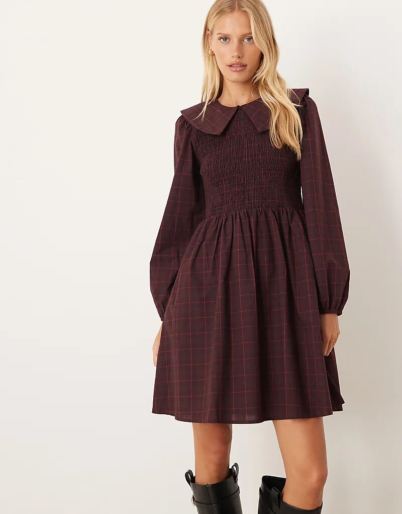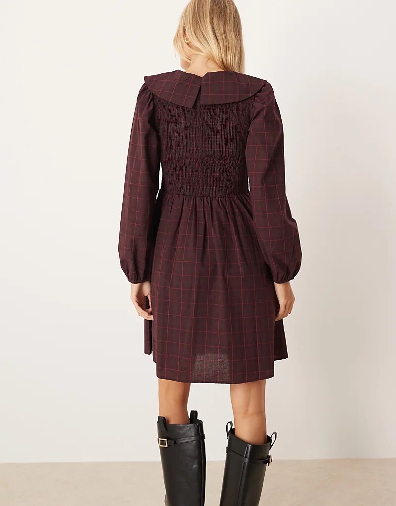 Мини-платье YAS с воротником-стойкой в ​​бордовую клетку