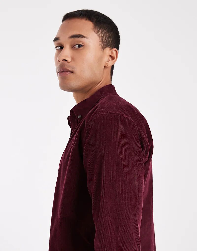 Вельветовая рубашка ONLY & SONS бордового цвета