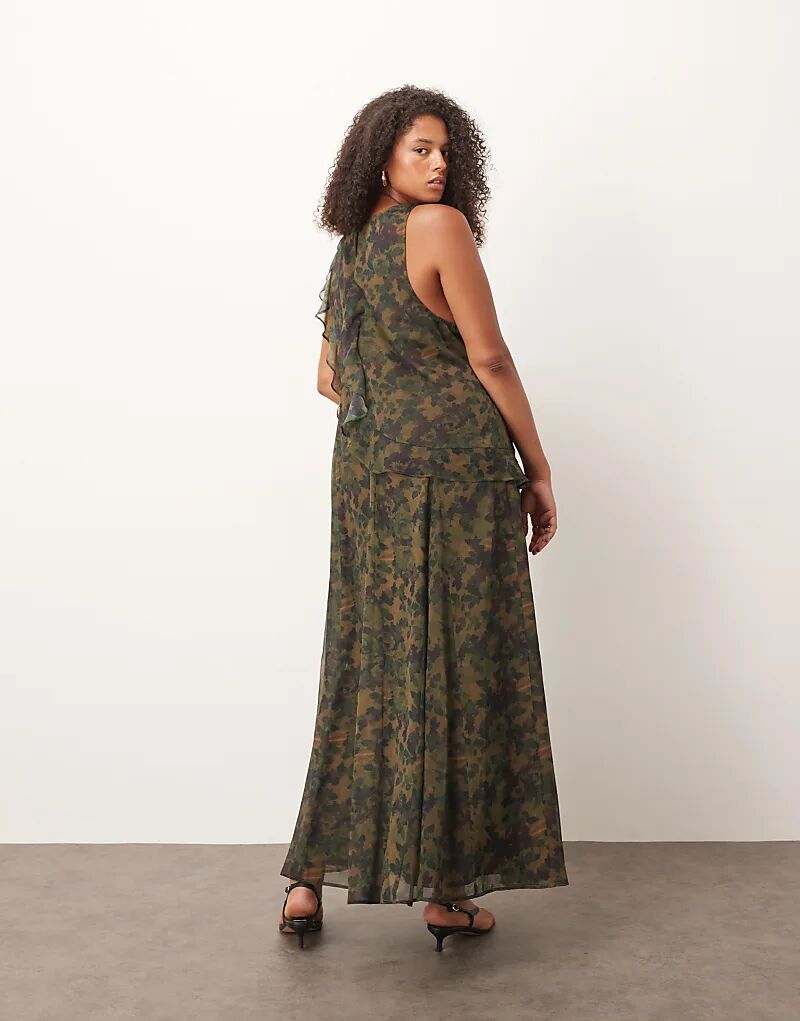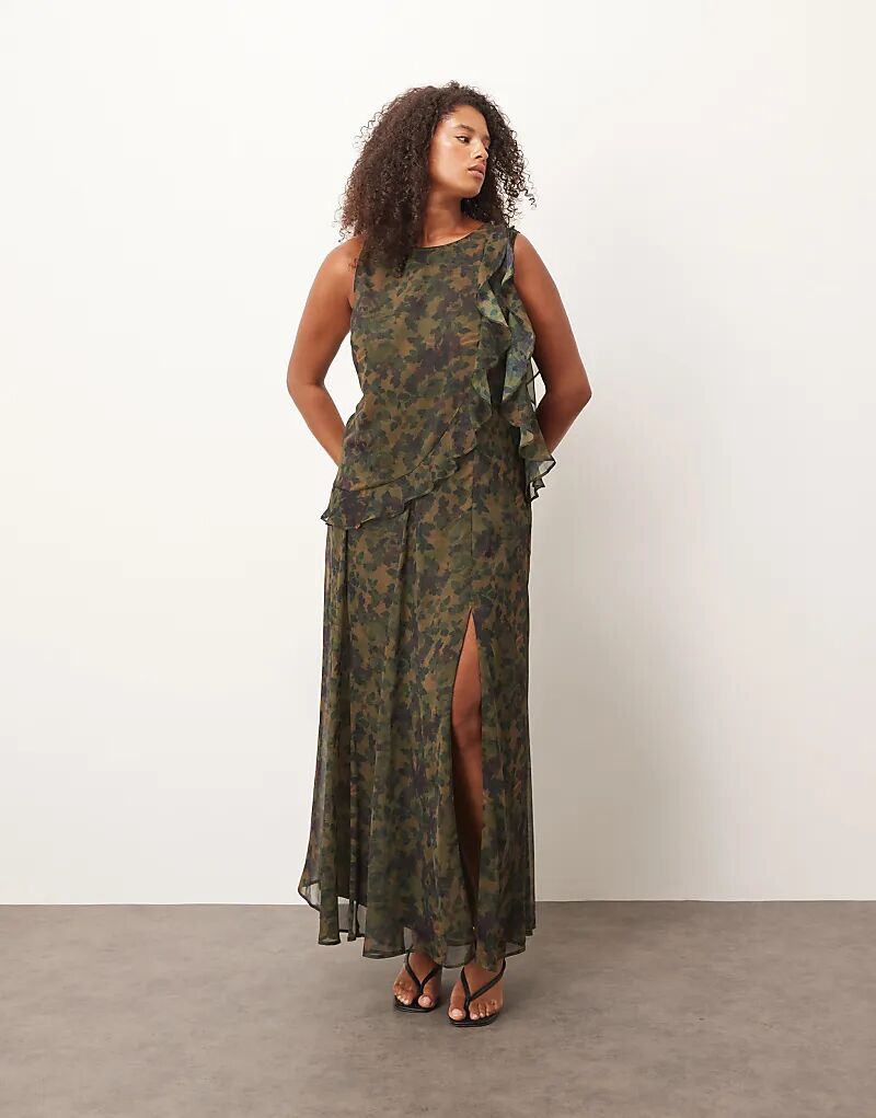 Платье-борцовка ASOS DESIGN Curve с оборками и зеленым абстрактным принтом