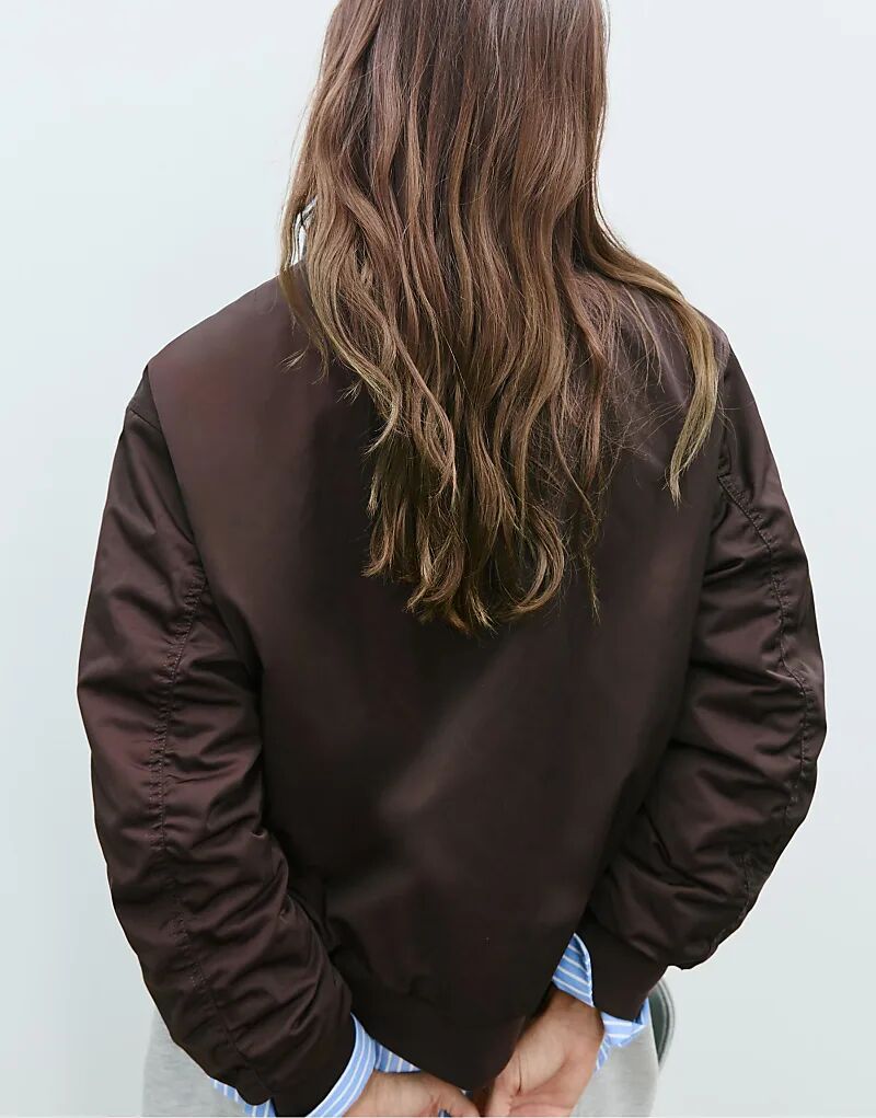 Куртка-бомбер Stradivarius Contrast фиолетового цвета 6 751₽