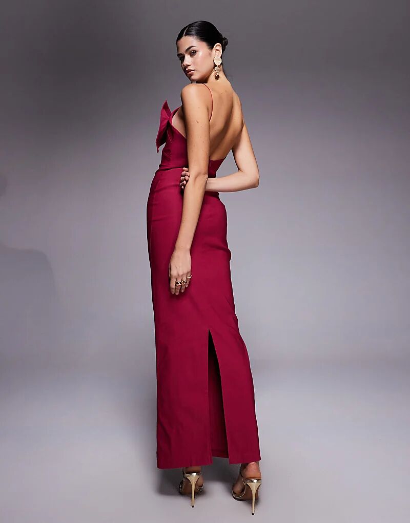 Платье-макси Vesper Cami на бретелях с бантом малинового цвета