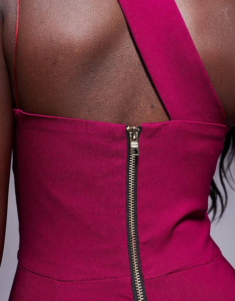 Платье миди Vesper асимметричного кроя малинового цвета