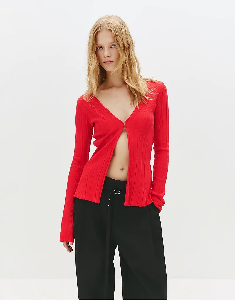 Длинный топ с крючками и петлями Pull&Bear красного цвета