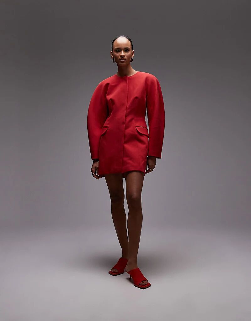 Платье-блейзер с рукавами-коконами от ASOS DESIGN красного цвета