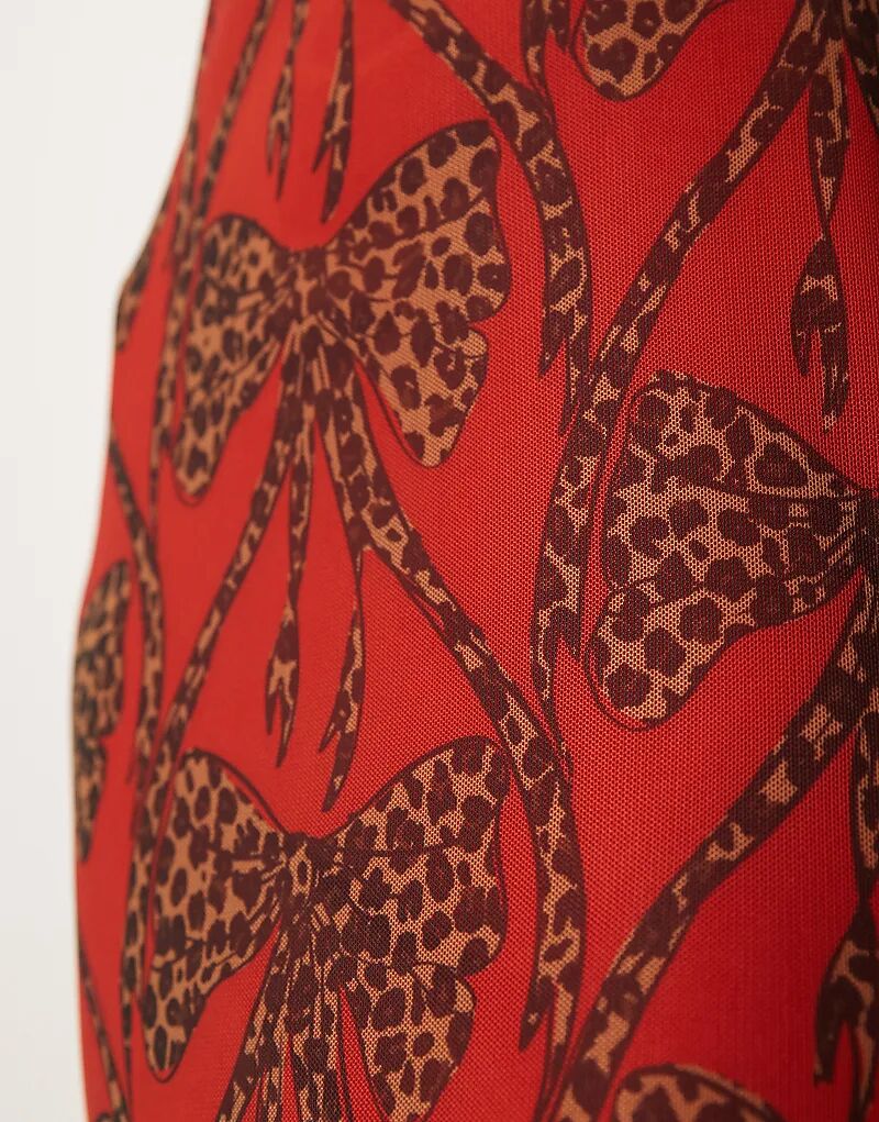 Платье макси с леопардовым принтом и бантом Never Fully Dressed красного цвета