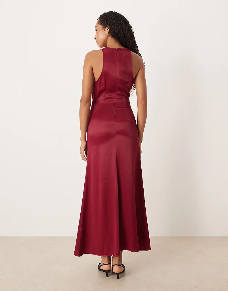 Платье макси из атласа ASOS DESIGN красного цвета с застежкой-борцовкой