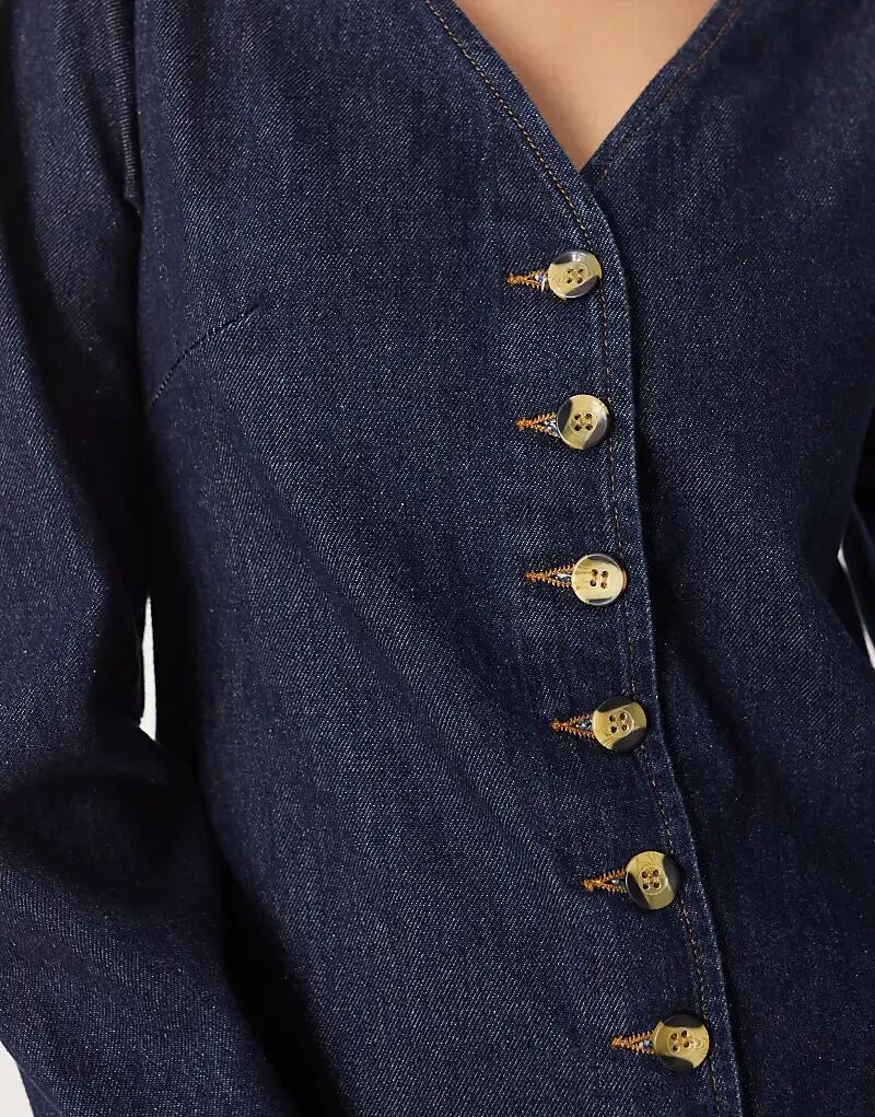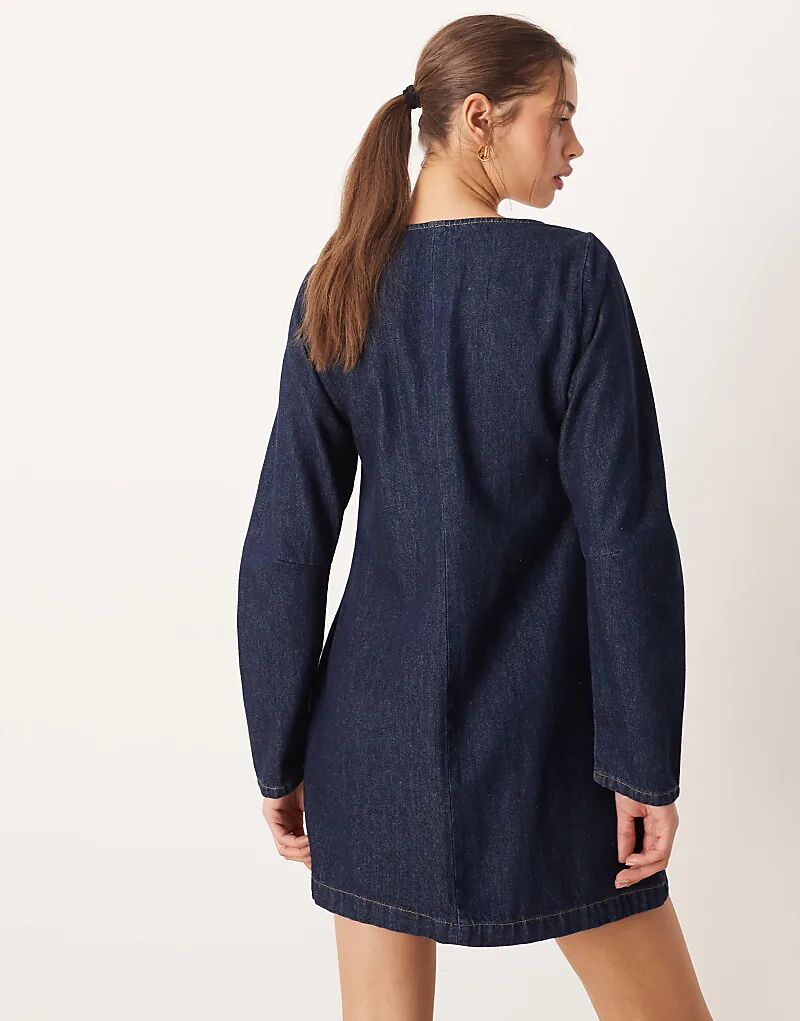 Джинсовое мини-платье ASOS DESIGN с V-образным вырезом и карманом, цвет «полосатый»