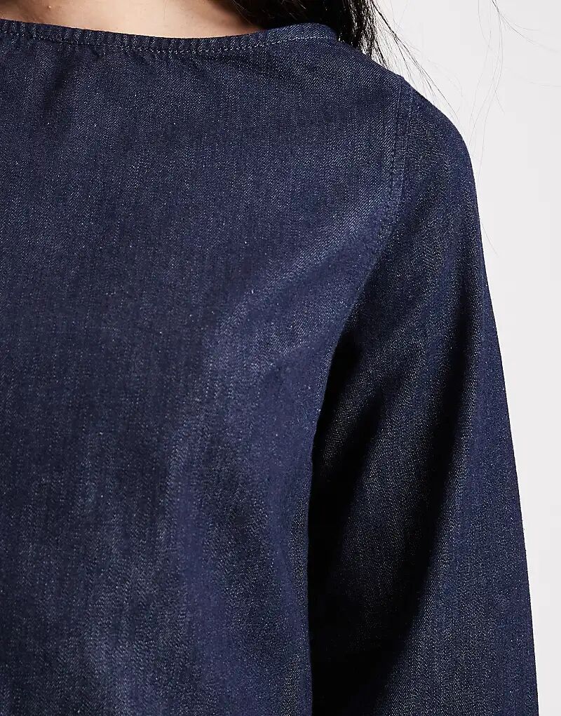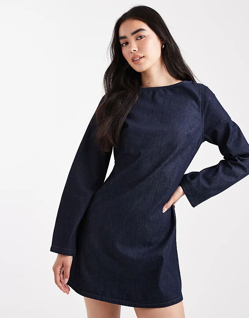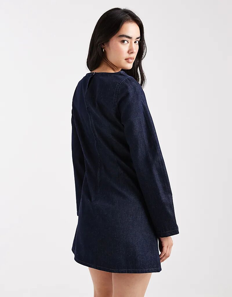 Джинсовое мини-платье А-силуэта с длинными рукавами ASOS DESIGN, цвет: смытый