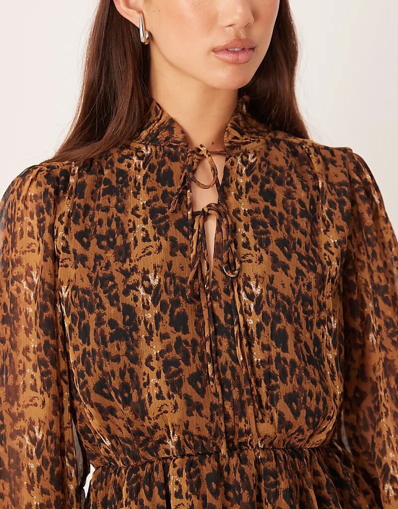 Платье миди Vila с короткими рукавами и леопардовым принтом