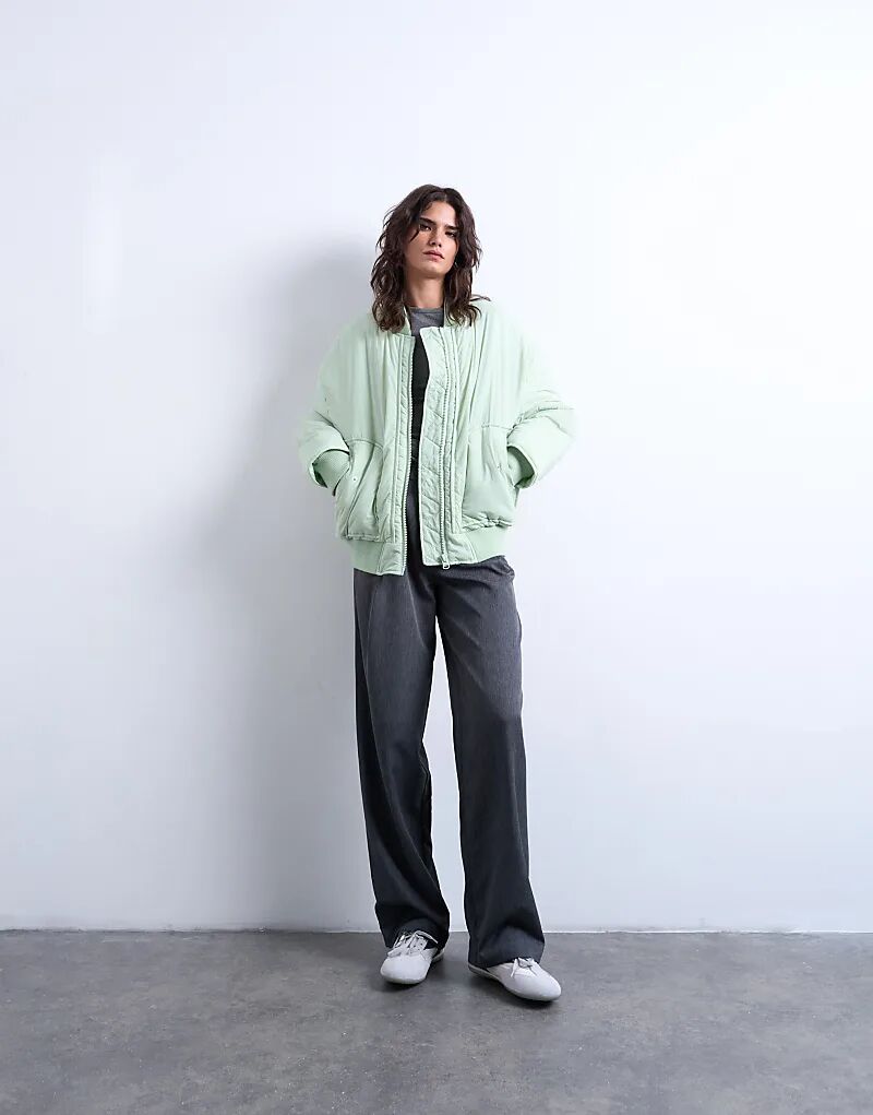 Техничная куртка-бомбер Topshop в цвете шалфей