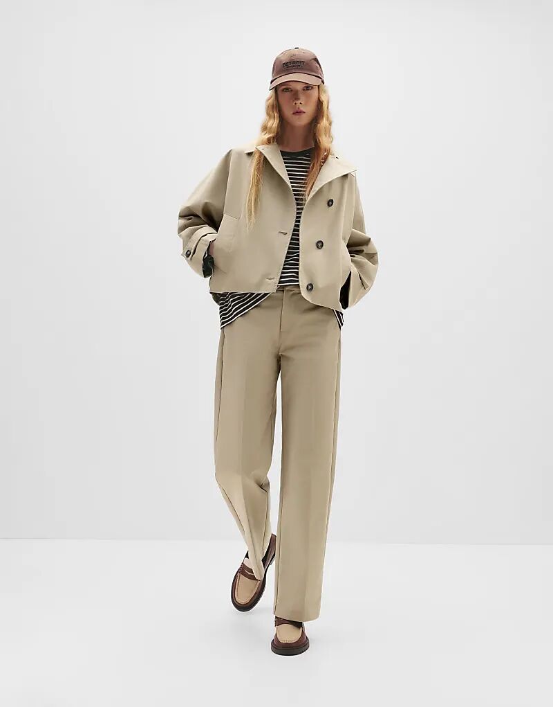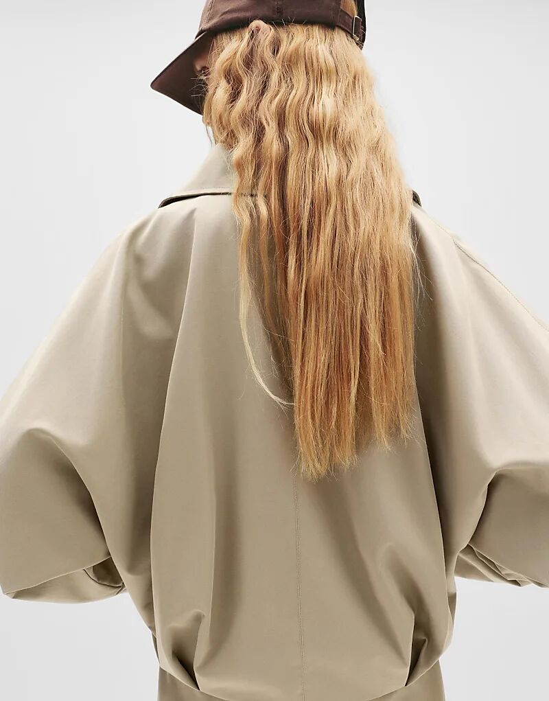 Pull&Bear Короткий тренчкот с объемными рукавами песочного цвета 8 381₽