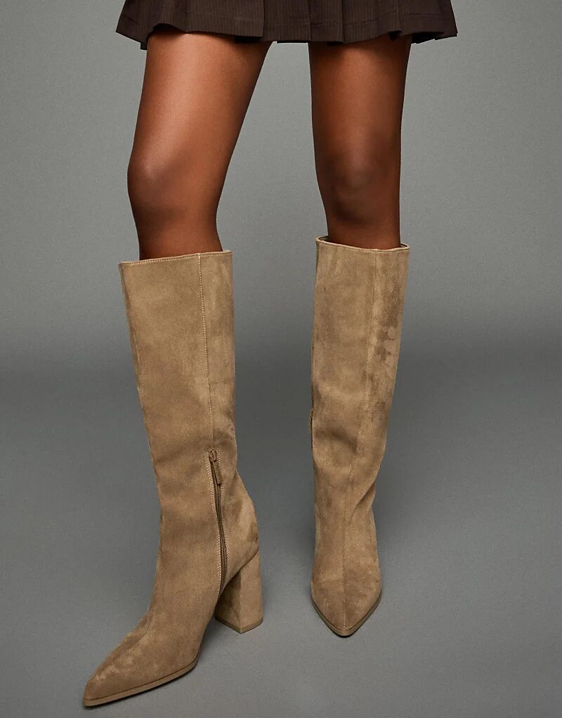 Ботинки Bershka на блочном каблуке песочного цвета