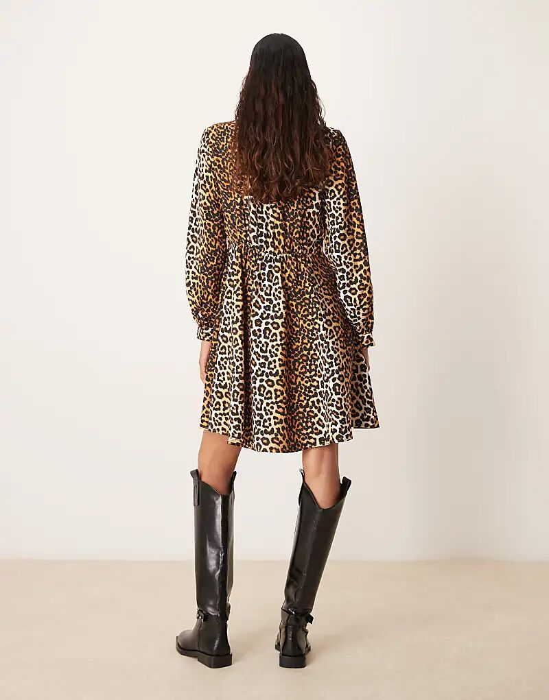 Мини-платье-рубашка YAS с леопардовым принтом и широким подолом
