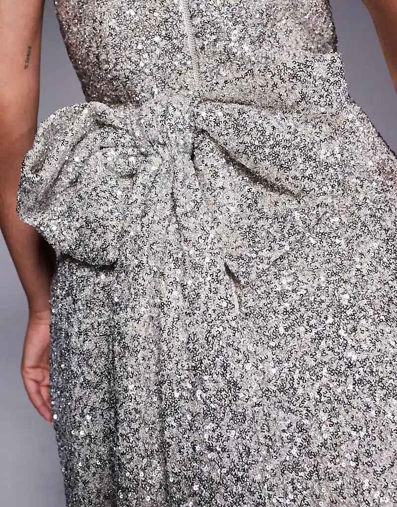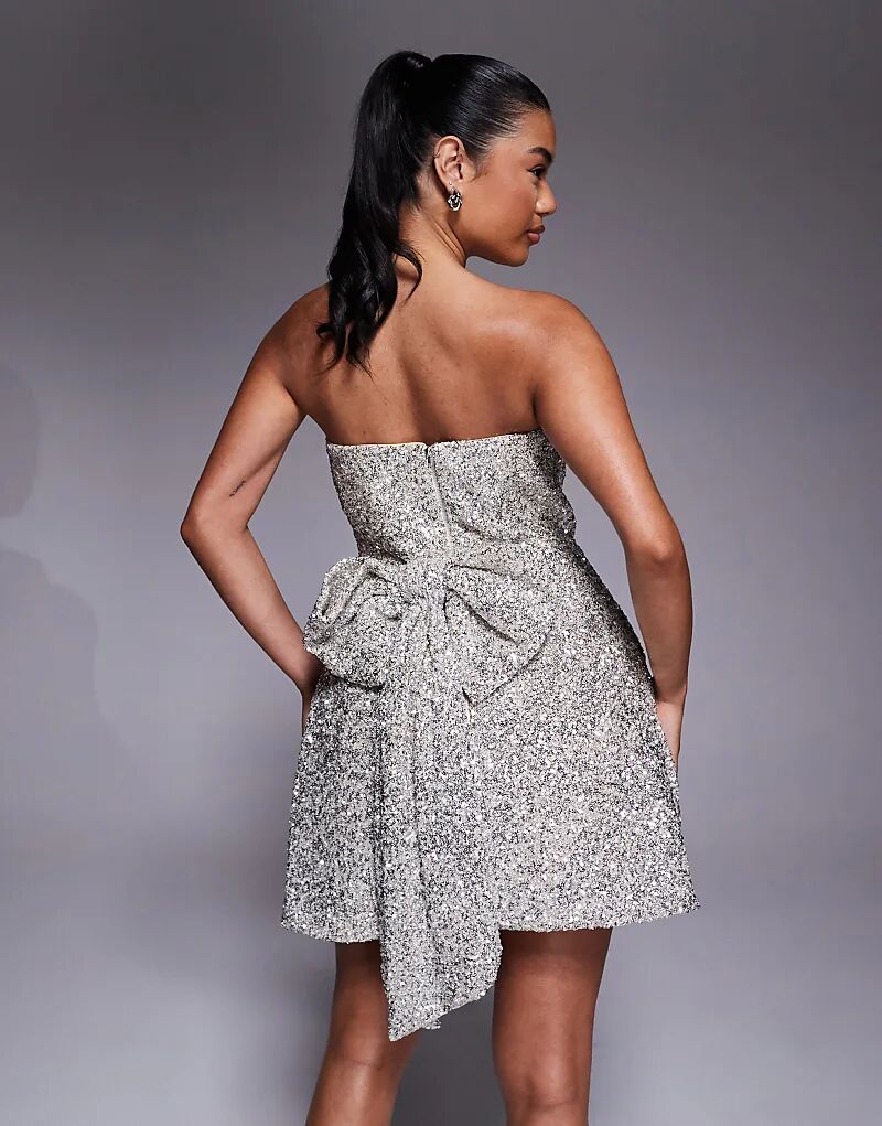 Мини-платье Jarlo с пайетками и бантом сзади, серебристого цвета
